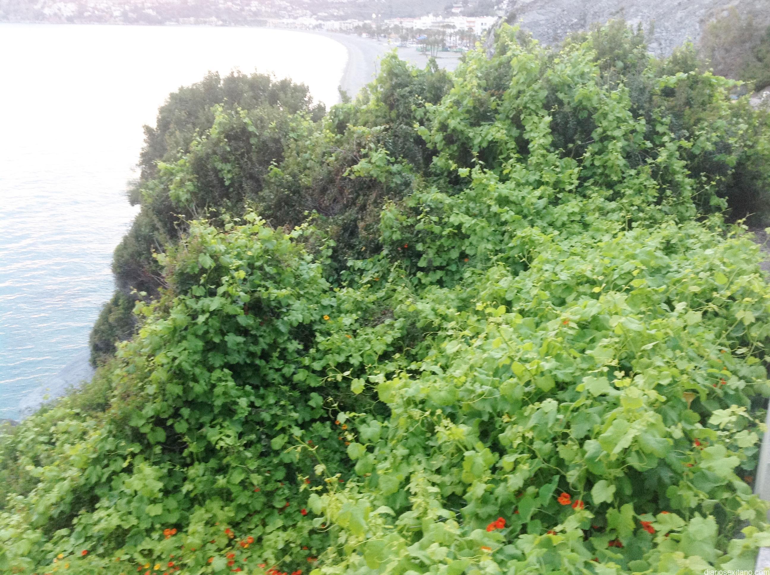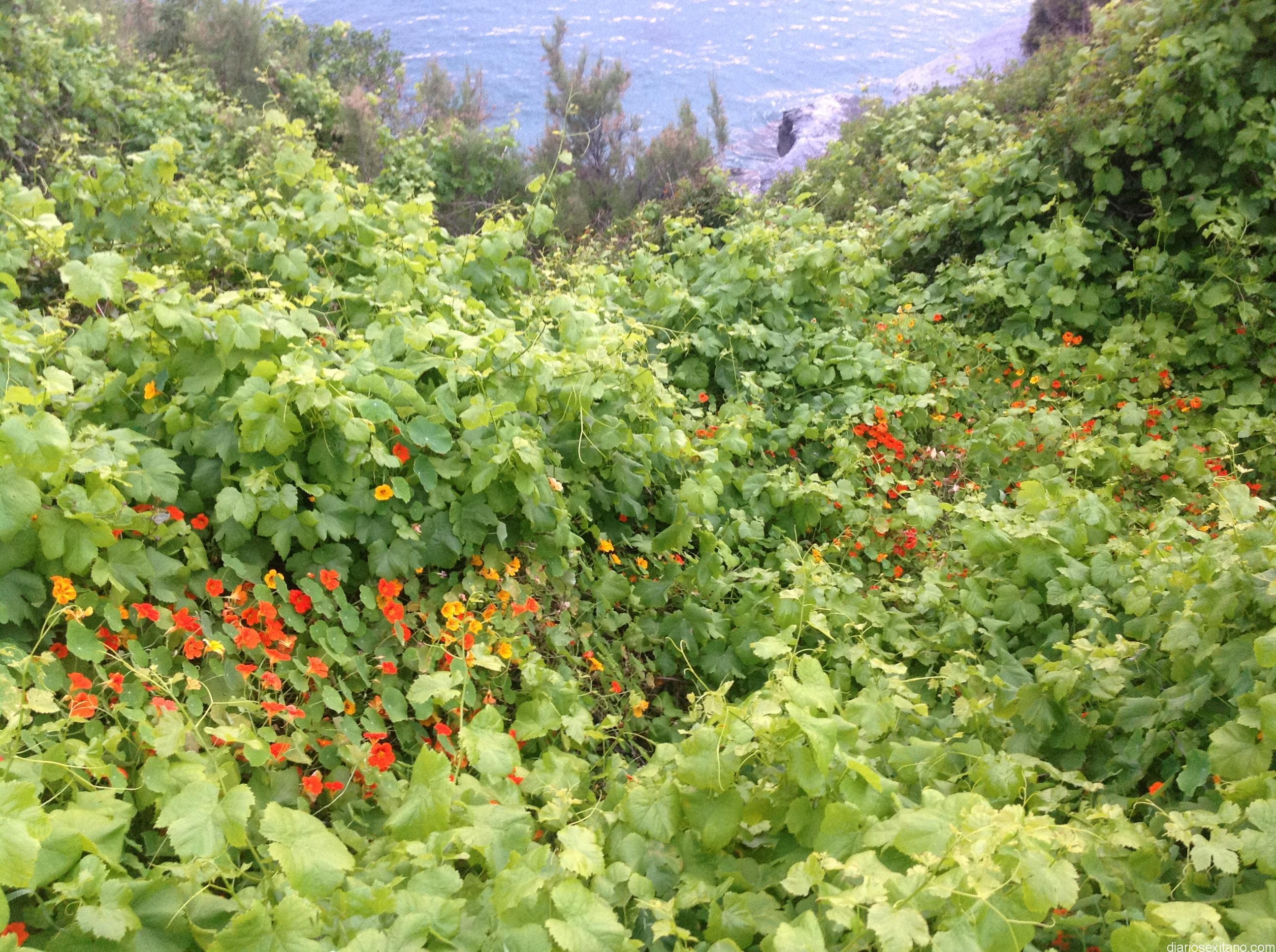 En la Punta de la Mona, sin ir más lejos y cerca del mar, se pueden ver, una o varias parras trepadoras, inmensas de grandes, que se han entremezclado con lentiscos y hasta algún pino para mostrarse así de esplendidas. Entre ellas, la paleta de colores se amplía con las flores, que ponen el broche entre el verde claro y oscuro de la parra y lentisco, respectivamente, destacando, aún más, con el azul del mar de fondo. Es la primavera en todo su esplendor que tiene, también, otros muchos efectos…. ahora toca disfrutarla con imágenes tan bellas como las parras trepadores y los lentiscos cerca del mar. No se ve todos los días, ni en cualquier sitio. @juanmdeharo