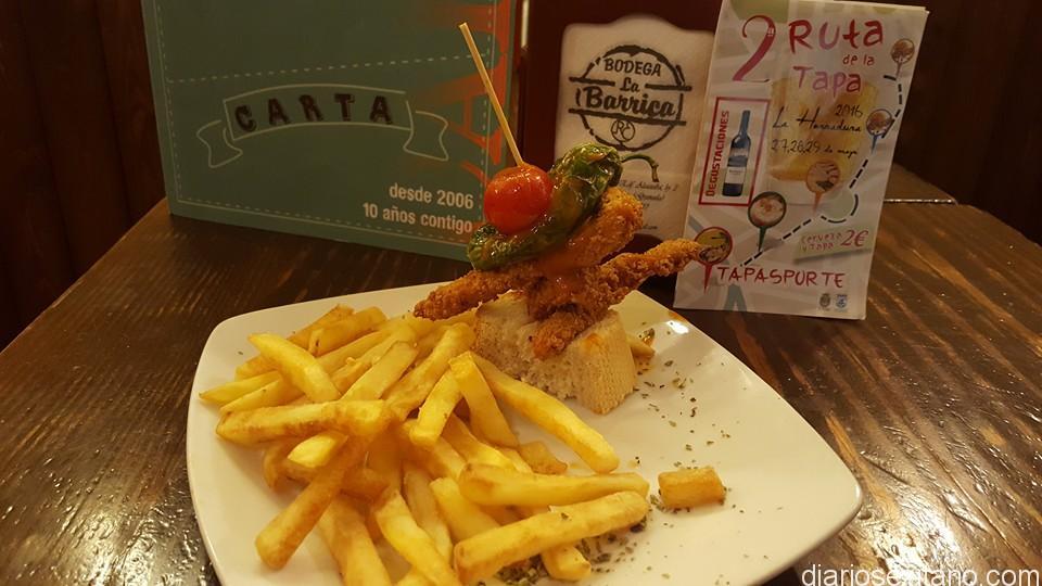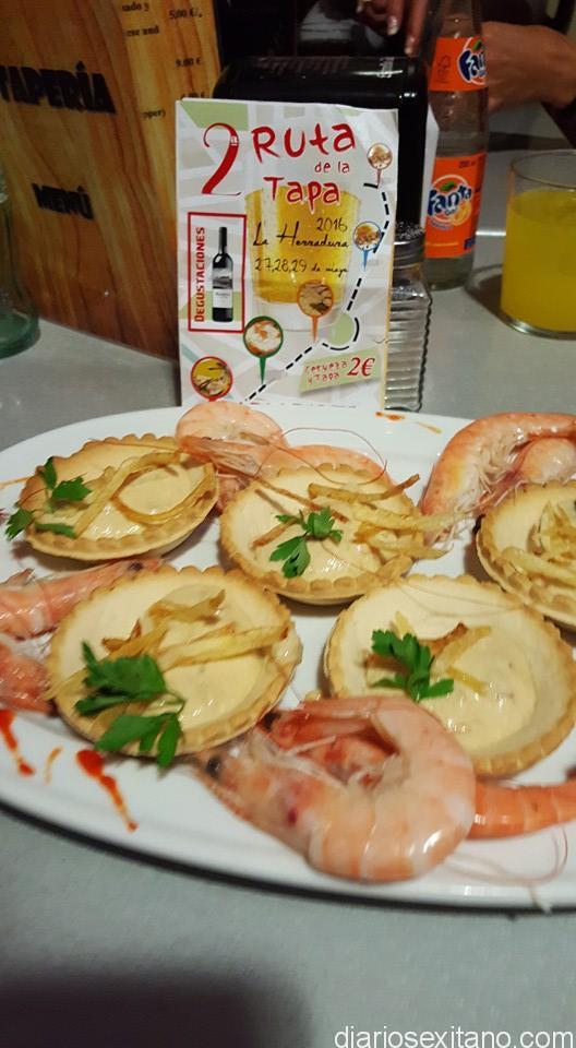 En cuantos establecimientos participantes y las tapas que ofrece en esta segunda ruta son: “La Tapería” , con “Tartaleta de langostinos y salsa de mostaza”; “Los Toneles”, oferta “Carrillada de vino tinto”; “Las Maravillas” da “Brocheta de pollo en salsa Estrogoff”. En “La Piedra”, se degustan “Caracoles en salsa”; “La Barrica”, tiene “Montadito de tiras de pollo con cherry, padrón y picante”; “Bar Budo” su tapa es “Jamón asado”; “El Salero”, da “Salmorejo”; “Chorrillo”, tiene “Carne a la manzana con cebolla caramelizada”; en “El Salón”, se degusta “Habas con huevos revueltos y jamón”; “Restaurante Almanza”, propone “Sardinas entre dos aguas”; en “Casa Antonio”, la tapa es “Tartar de salmón a la naranja con base de torta de trigo”. En “El Cúpula” la tapa que oferta es “Bacalao confitado con milhojas de verdura y patata”; “La Bamba”, apuesta por “Mejillones a la marinera”; en “Dis Tinto”, la tapa es, “Pulpo a la brasa” y, por último, “Restaurante Cerro Godo”, la tapa se denomina, “Delicia de rabo de toro en salsa de azafrán “Atardecer”.