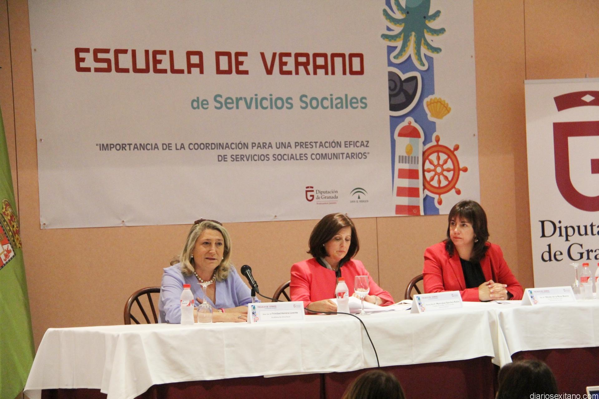La alcaldesa de Almuñécar, Trinidad Herrera ha destacado durante el acto de clausura de la Escuela de Verano de Servicios Sociales, que se viene desarrollando, año tras año, en la localidad sexitana durante más de dos décadas “el importante papel que ha tenido este evento en la formación y difusión de los avances en esta materia, al ser punto de encuentro y fiel reflejo del sector en este tiempo”, dijo