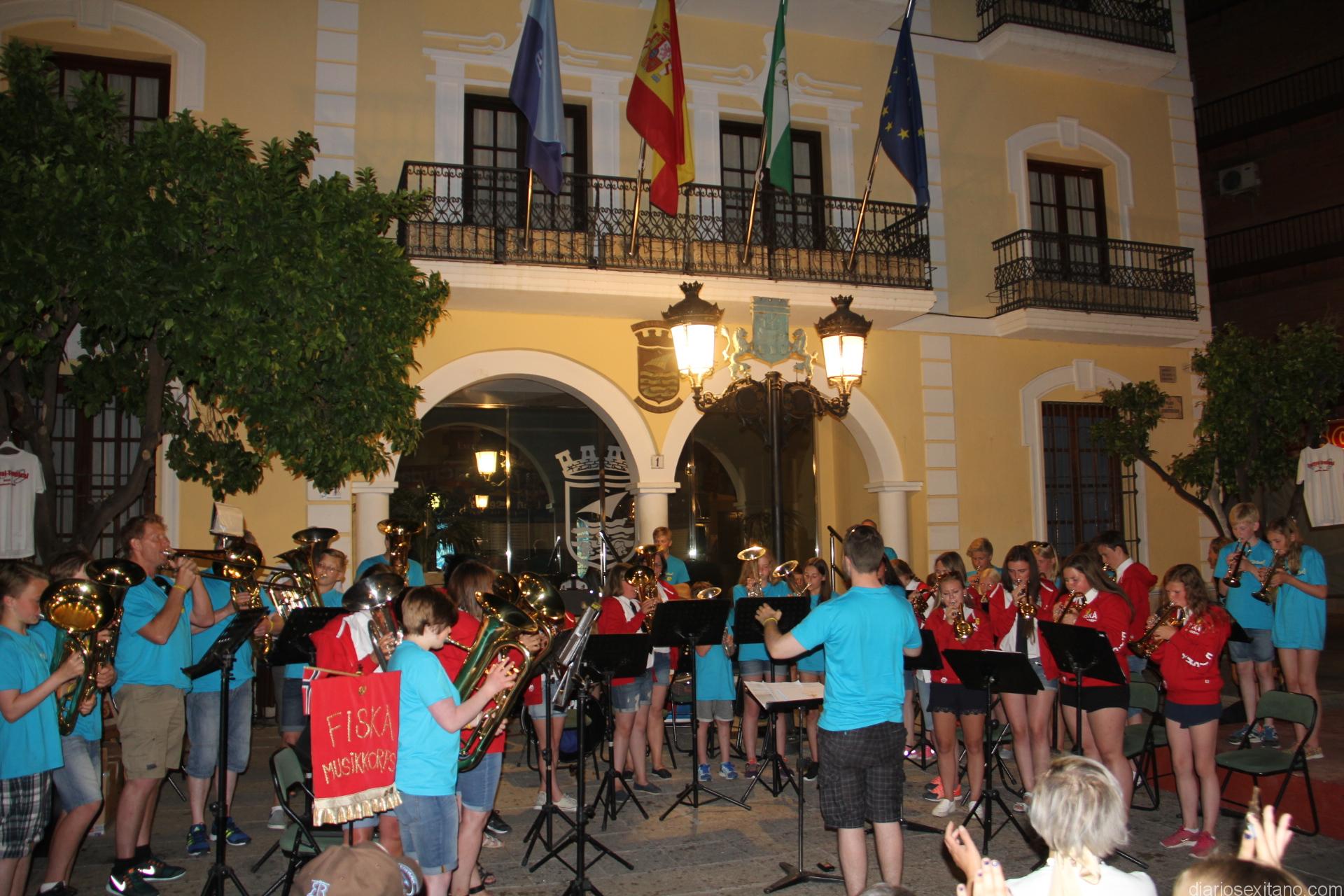 Después llegaría la primera actuación de Banda Kvikne Skolemusikk formada por una treintena de músicos que ofrecieron un repertorio de música noruega. A continuación le llegó el turno a la Banda Fiska Musikkorps que interpretó un programa de composiciones modernas. Ambos recibieron los aplausos del público que se vio sorprendido gratamente durante casi dos horas de un espectáculo musical en pleno centro sexitano.