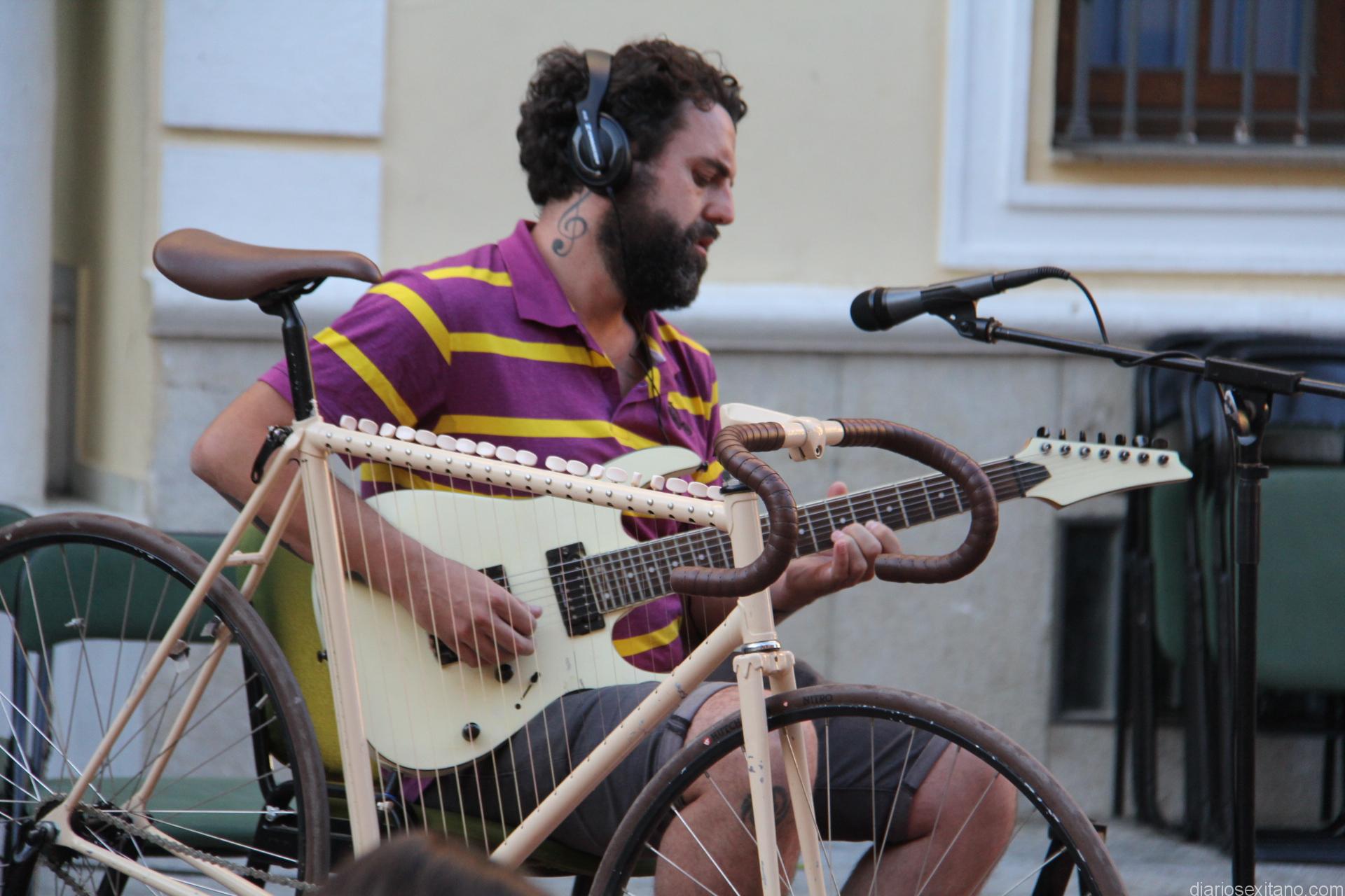 El concierto lo abrió el músico malagueño, Roberto Herruzo, haciendo música improvisada y sobre la marcha con la bici-arpa y la técnica y dominio de la guitarra.