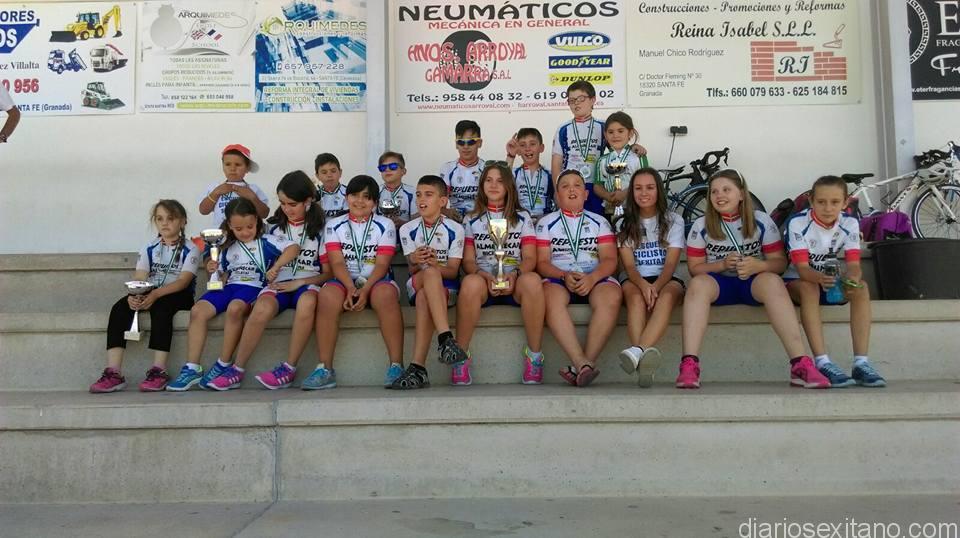 Si el pasado sábado hicieron podio, en las respectivas modalidades y categorías, en la prueba celebrada en la velódromo de la localidad de Santa Fé y donde se dilucidaba el campeonato de Andalucía, para campeonato provincial en esta modalidad, el domingo volvieron a subirse de nuevo al podio en la localidad sevillana de Dos Hermanas, en lo que era la segunda prueba puntuable para el trofeo de pista de ésta localidad.