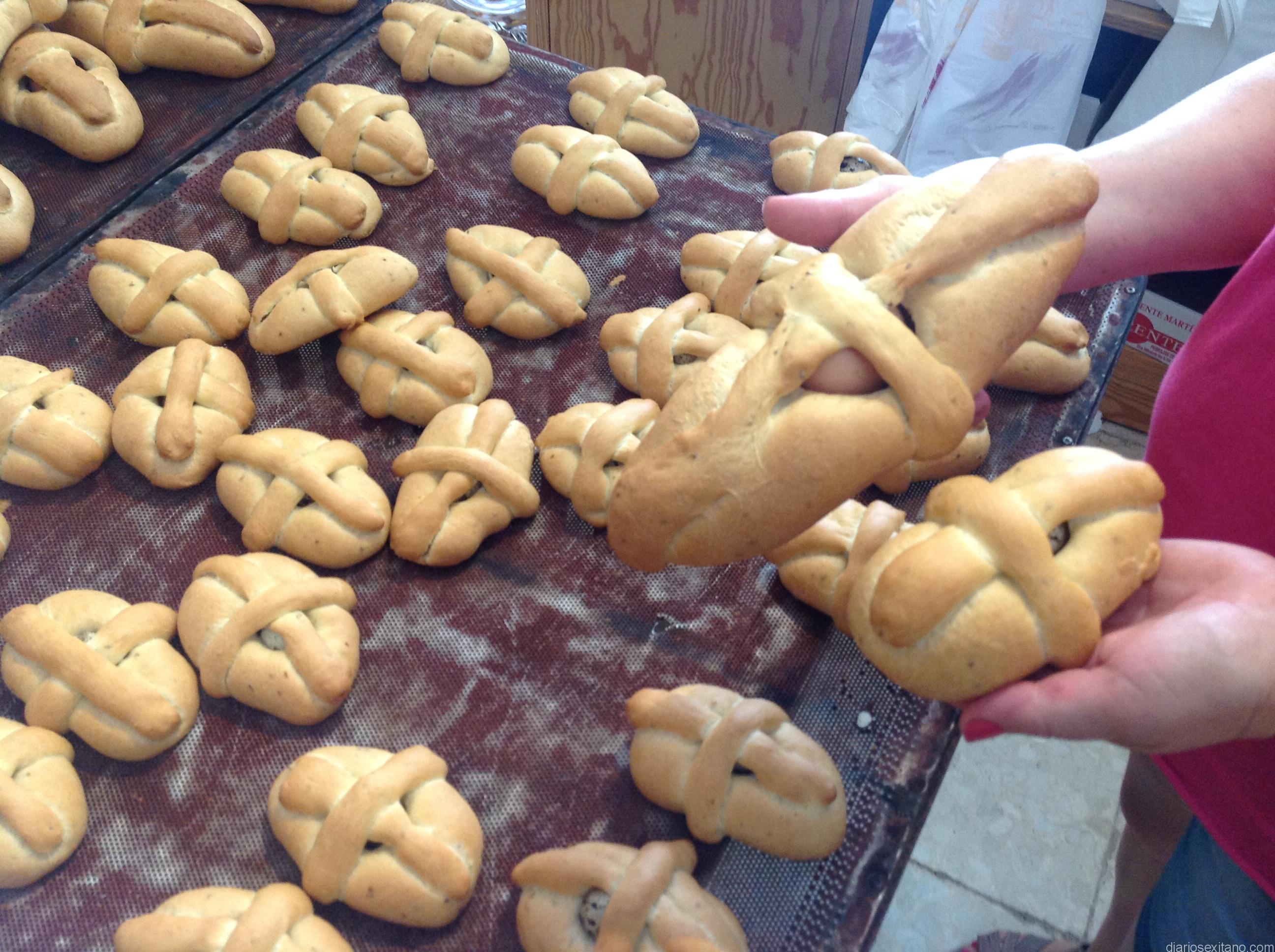 El Bollo se hace con una masa especial donde no falta, además de la harina especial, el aceite de oliva, matalauva y el huevo, como más destacado. Este año se realizaron más los bollos pequeños adornados de huevo de codorniz y otros bollo de dos huevos y elementos especiales por encargo, como no.