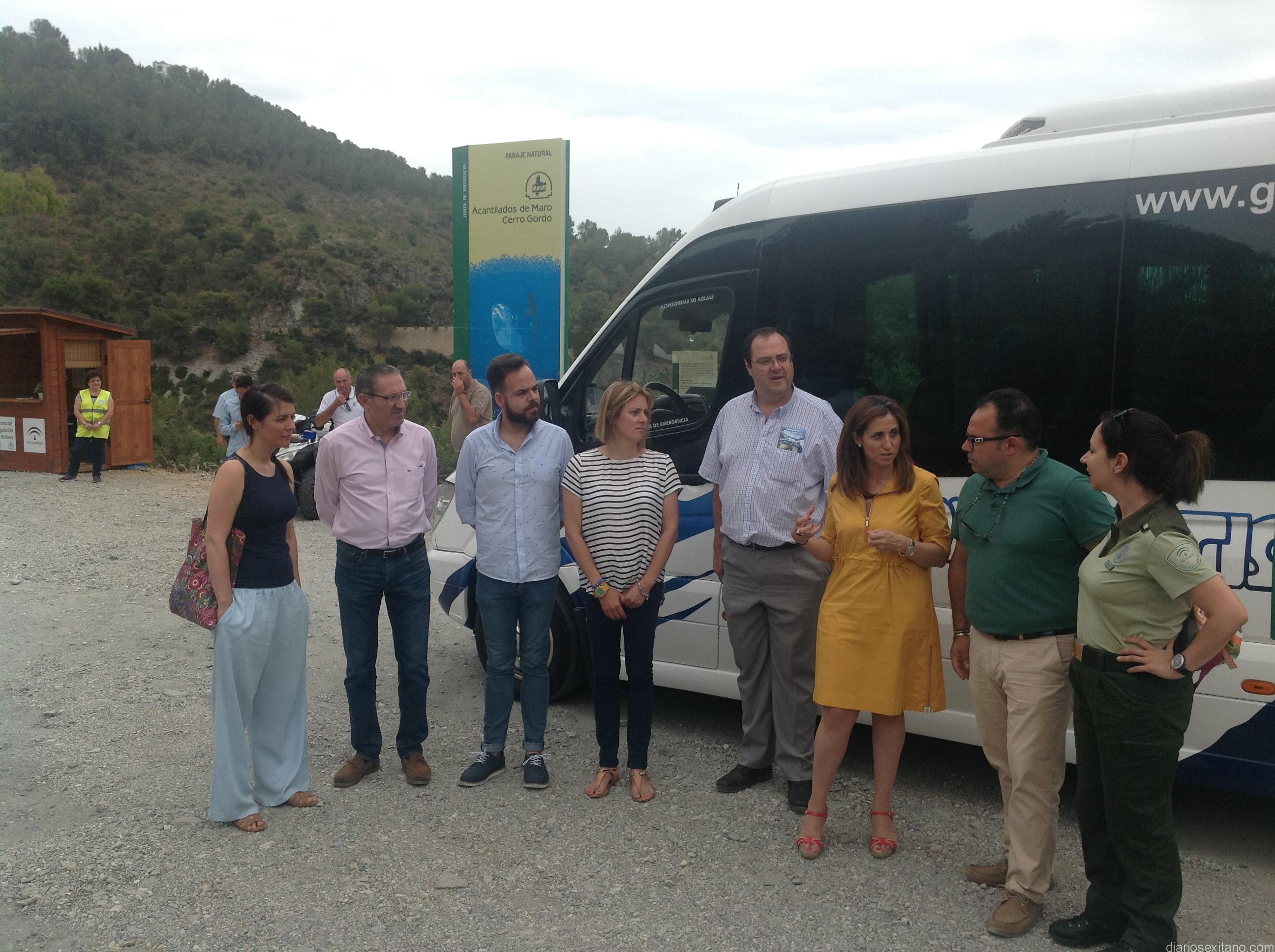 El servicio de lanzadera y control de acceso a la citada playa, adjudicado desde el pasado año a la empresa sexitana “Autobuses Gonzamatic, es atendido por un total de 7 empleados, funcionará desde este viernes, aunque este año se haya puesto en marcha el pasado jueves, 23 de junio al 31 de agosto, en horario de 9 a 21 horas (12 horas) con una cadencia aproximada entre vehículos de 10-15 minutos. De lunes a jueves se dispondrá de dos vehículos de 19 y 28 plazas, respectivamente. De viernes a domingo, se ampliará además un tercer vehículo de 15 plazas. El coste del billete único, ida y vuelta, es de 2 euros. Asimismo, se encuentra habilitado un Punto de Información junto a la barrera, con idéntico horario al del servicio de transporte, que tiene como objeto fundamental informar adecuadamente a los/as usuarios/as sobre las características del servicio y sobre el propio Paraje Natural Acantilados de Maro-Cerro Gordo. Se completa la dotación con una marquesina de espera al transporte, que será desmontable al finalizar el servicio, y se ha repasado el firme en la línea final del recorrido para facilitar el cambio de sentido de las lanzaderas.