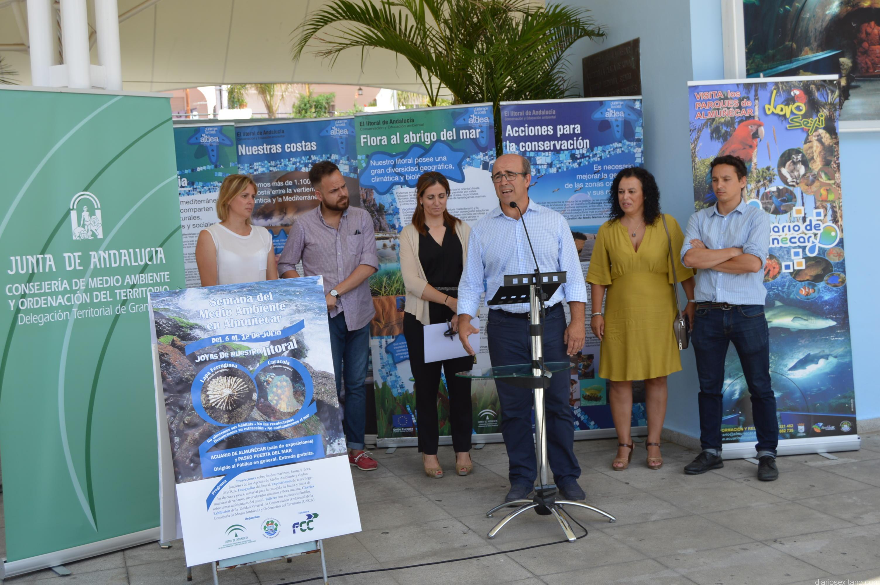 La delegada provincial de Medio Ambiente de la Junta de Andalucía, Inmaculada Oria, y el concejal delegado de Medio Ambiente del Ayuntamiento de Almuñécar, Luis Aragón Olivares, han inaugurado hoy la Semana del Medio Ambiente sobre el litoral sexitano con el objetivo de un mayor conocimiento del mismo y sus fondos marinos, tanto en flora como en su fauna, que son de los más destacados en el mediterráneo andaluz.