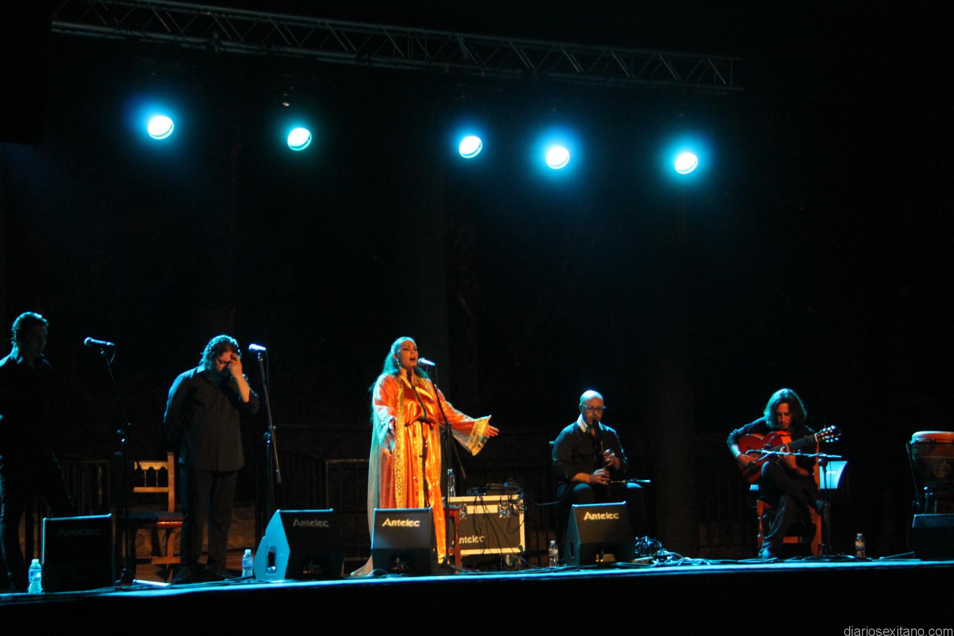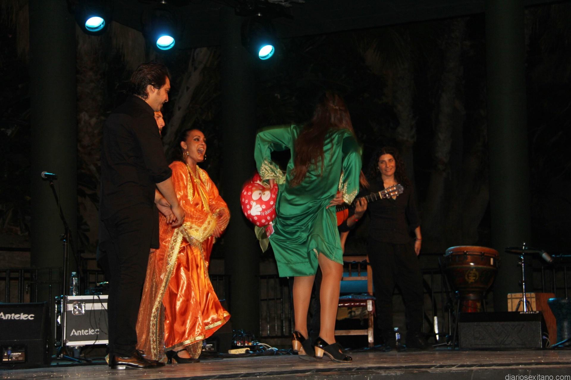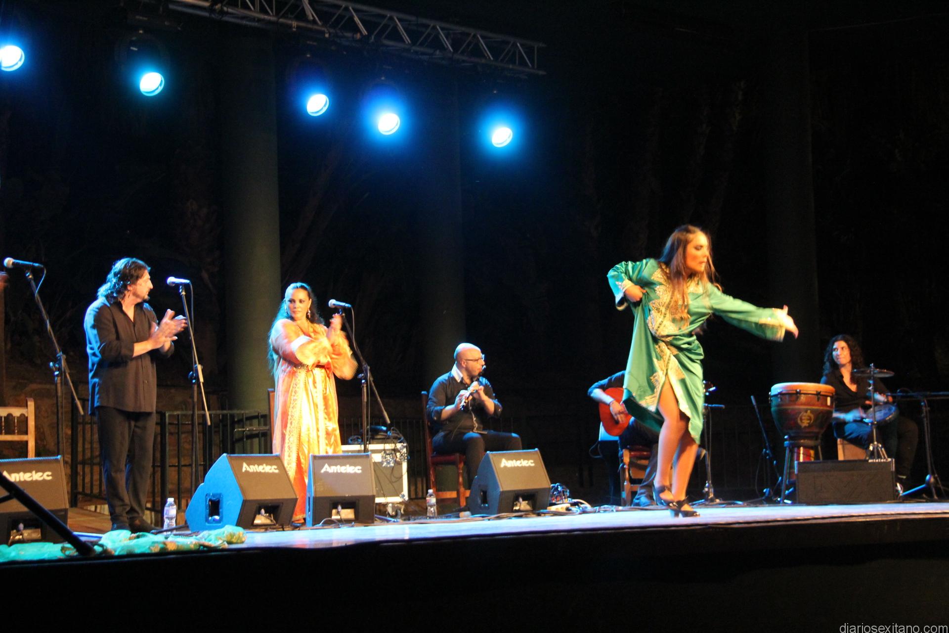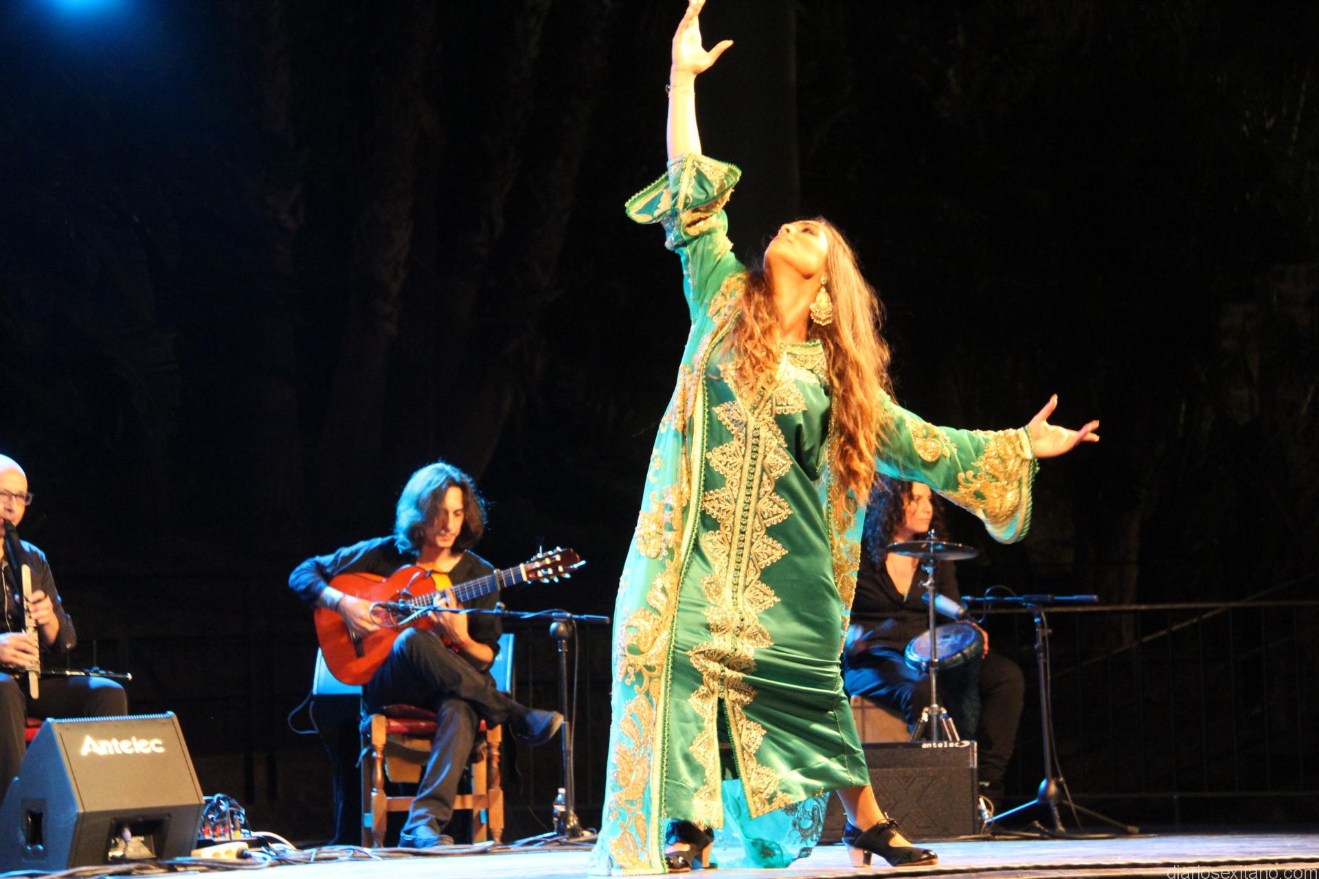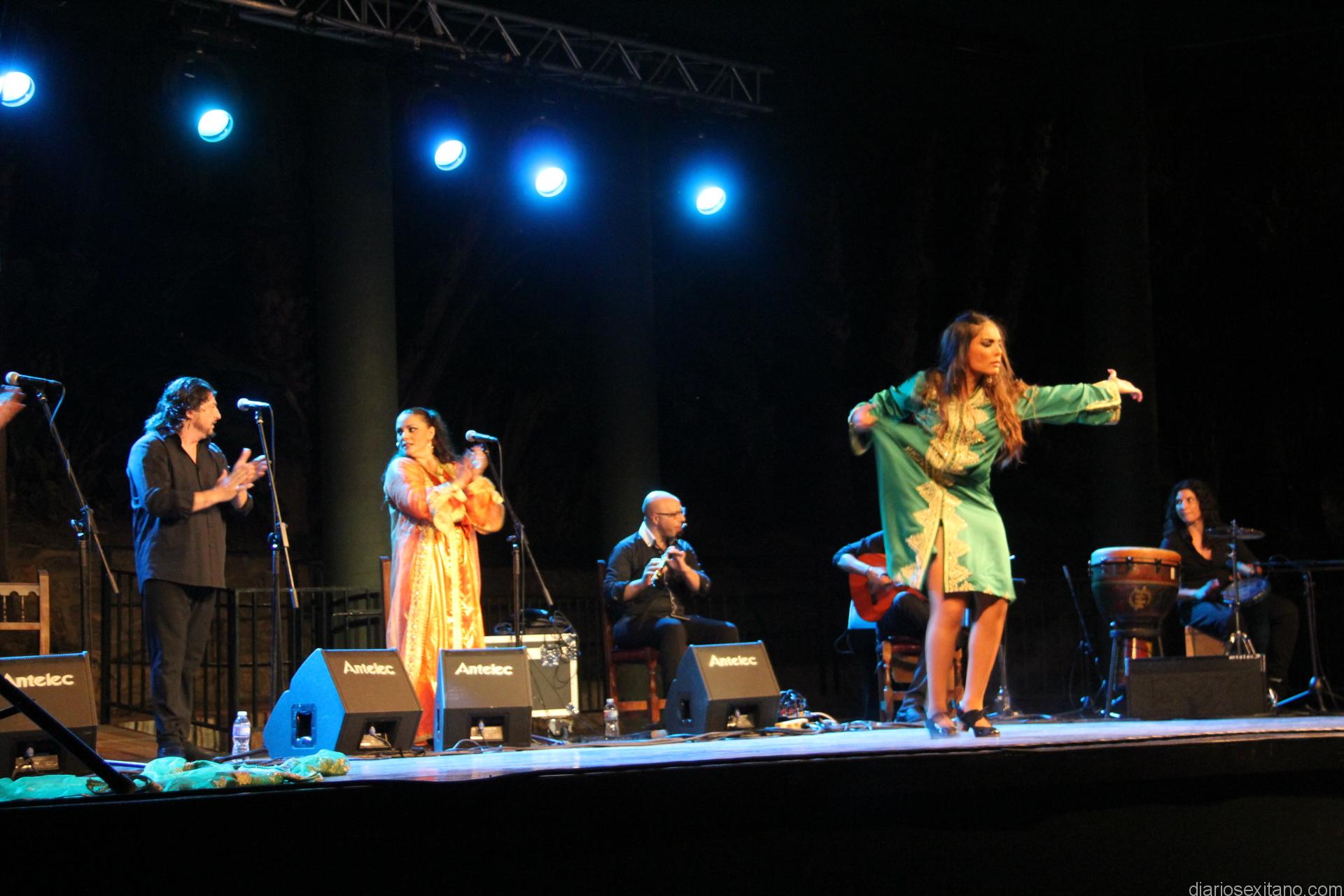 La joven bailaora granadina, ataviada de indumentaria árabe sobre el escenario, hizo un derroche de fuerza y compás al ritmo que marcaban los cantaores Alfredo Tejada y Juan Ángel Tirado; con la guitarra, Manuel Fernández, y a las palmas y coros, Rafi Heredia, entre otros.