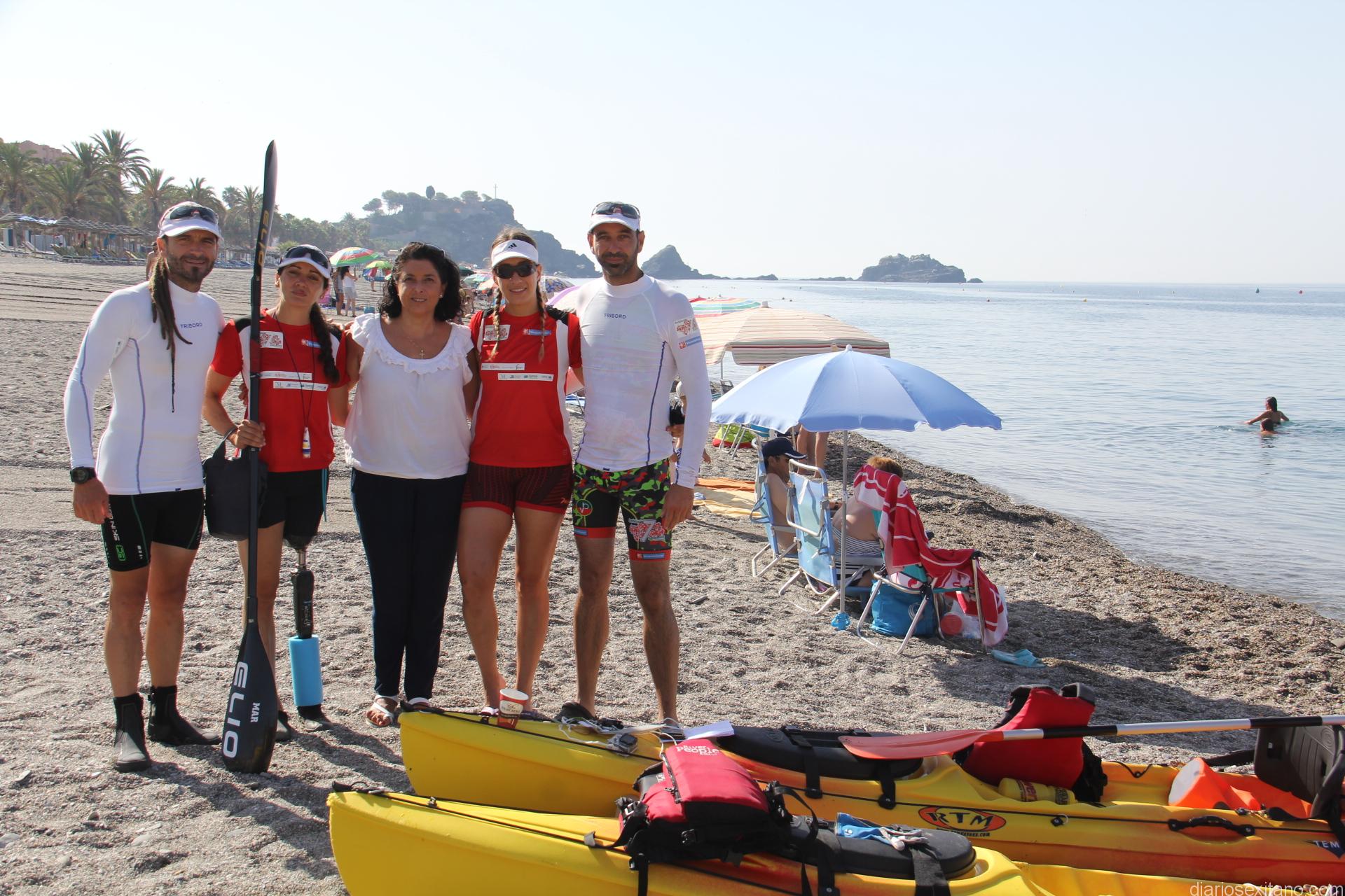 “Andalucía 7 Desafíos” tiene su singularidad no solo en su fin solidario y en los múltiples deportes representados, sino sobre todo en las personas que lo llevarán a cabo. Estos son: María Ballester Ruiz, Mar González Maestre, Sergio Martín Carrasco y Juan Manuel Arrazola Belda, que tras una breve parada en la playa San Cristóbal pusieron rumbo a los Peñones del Santo para llegar a Velilla y finalizar la jornada la siguiente etapa en Salobreña.