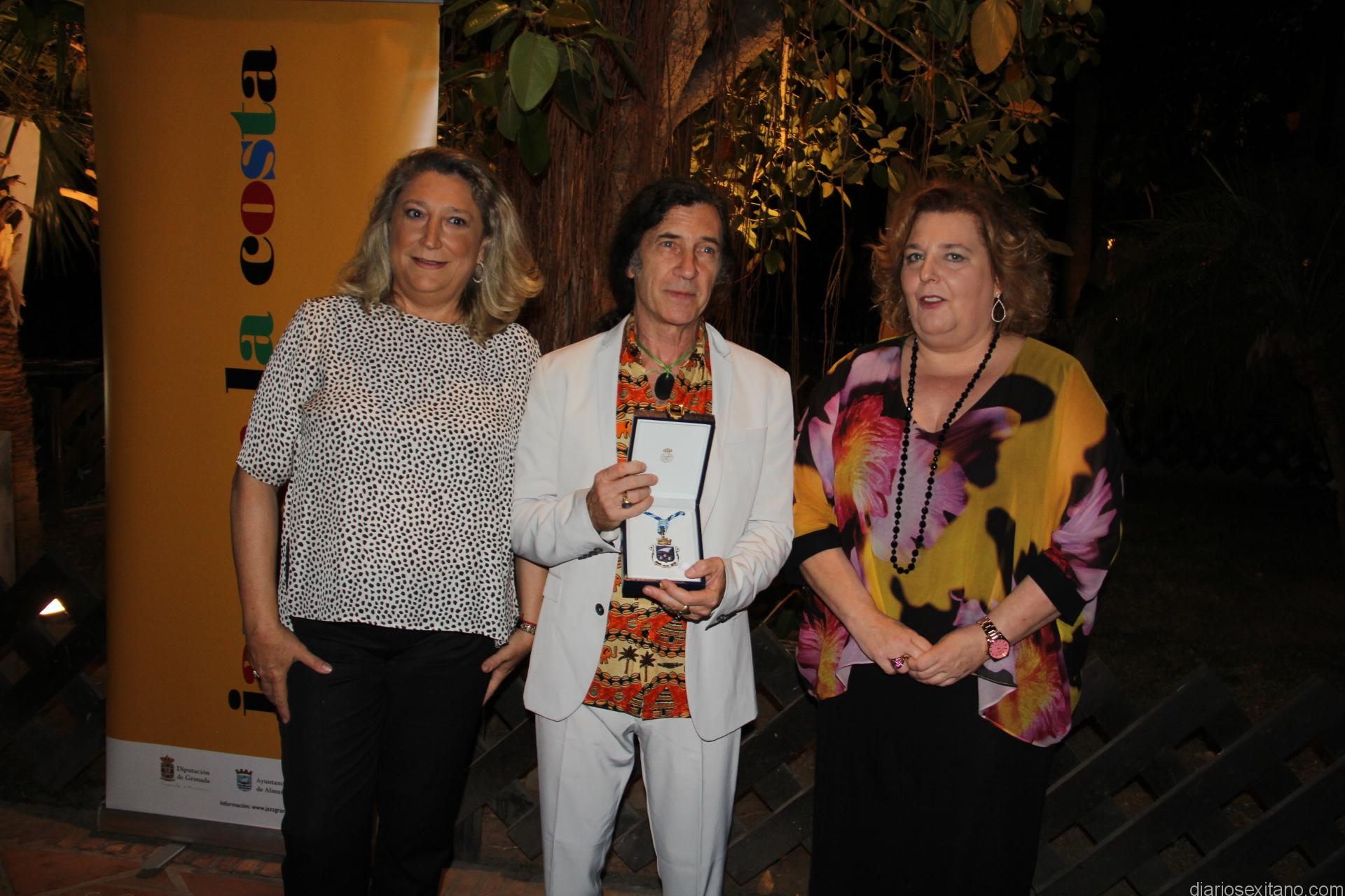 El músico madrileño Jorge Pardo añadió a su colección de reconocimientos la medalla de oro de la ciudad de manos de la alcaldesa, Trinidad Herrera, y en presencia de la diputada de cultura, Fátima Gómez. También forma parte, con una placa, como miembro de del “Boulevard del Jazz en la Costa” de Almuñécar situado en el propio Parque El Majuelo, que descubrió antes del concierto.
