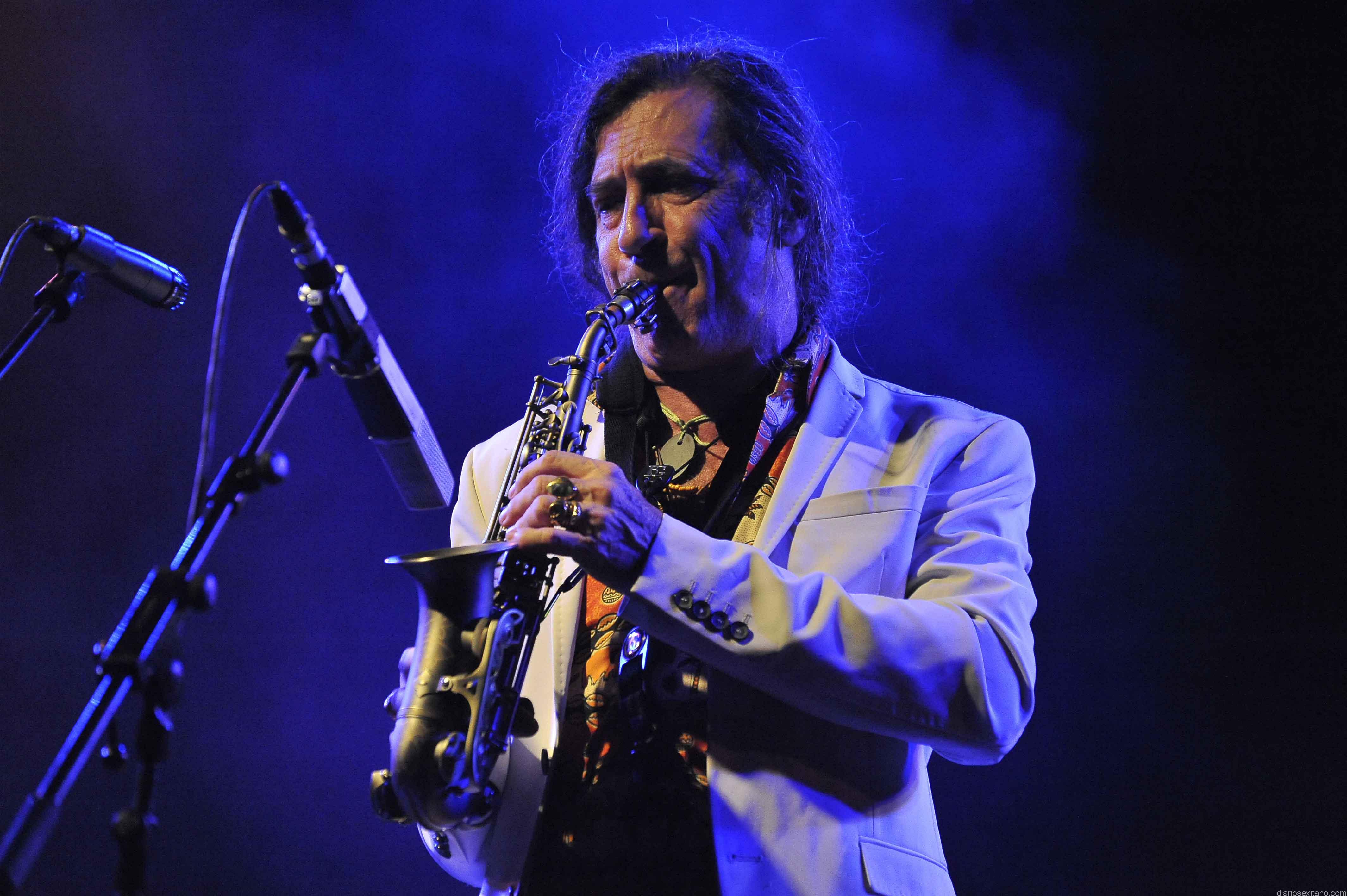 El saxofonista y flautista Jorge Pardo se puso al frente de un modelo de grupo que nos lleva directamente a su amigo y compañero Paco de Lucía en versión contemporánea, por no decir futurista, con cantante, cantaora y DJ. Tras estrenar ‘Huellas’ en el Festival de jazz de Granada, e ‘Historias de Radha y Krishna’ en el Corral del carbón (programa ‘Jazz hecho aquí’), Pardo trajo a Almuñécar su nuevo proyecto ‘Djinn’ un paso adelante más en una nueva búsqueda experimental que le ha llevado a trabajar con ritmos del flamenco o del Jazz, de ambos y ninguno, para profundizar, en el ‘Groove’, y en un sonido que podría recordar en tiempos de la electrónica al del legendario grupo Dolores, el equipo ya rodado con tres discos históricos que absorbió directamente Paco de Lucía para organizar su mítico sexteto.