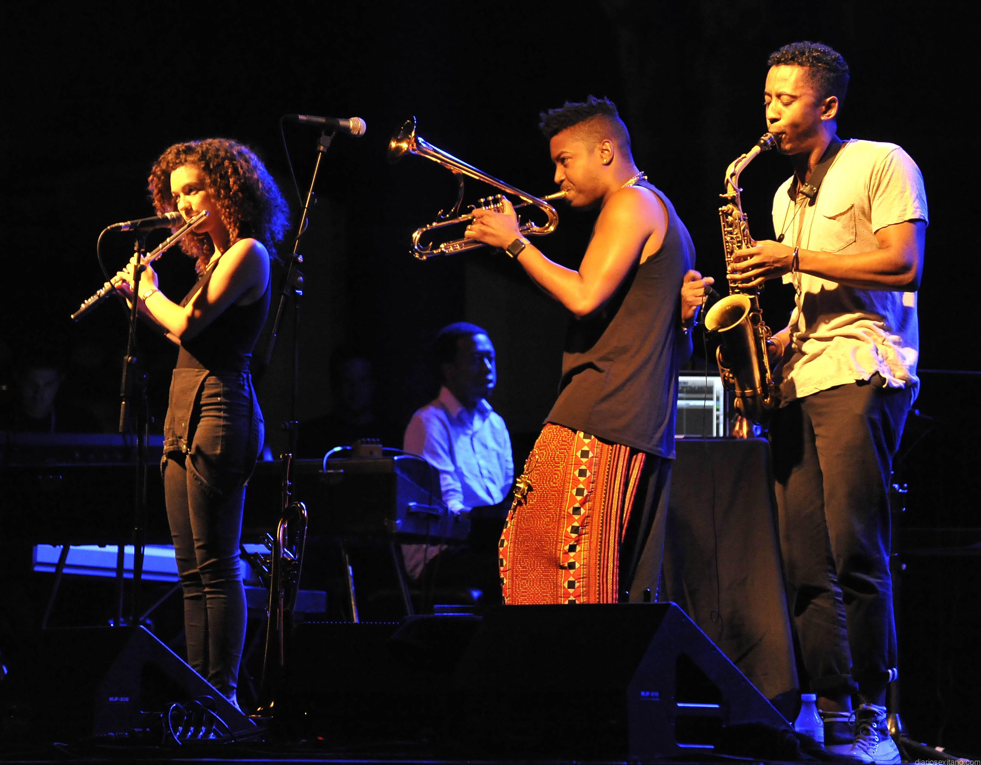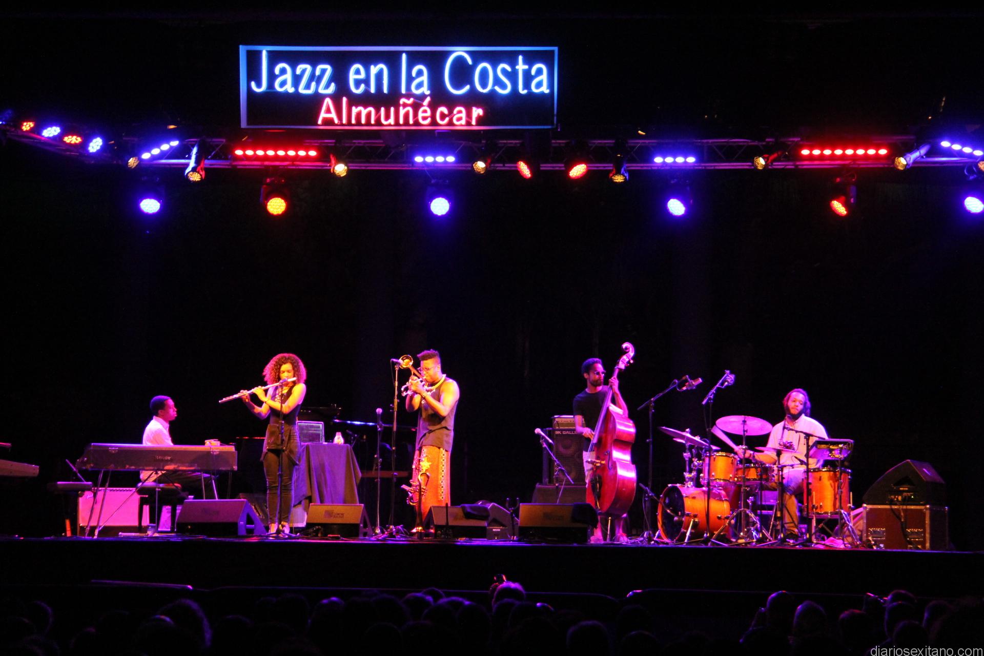 Christian aTunde Adjuah, antes conocido como Christian Scott ha dado un paso adelante y otro al lado con “Christian aTunde Adjuh” y “Stretch Music”, el disco que estrenaba en la localidad sexitana con el núcleo duro de la banda que lo grabó, en un concierto en el que hubo mucho Miles Davis, Nueva Orleáns, Radiohead o Soft Machine dejando su huella en este intenso, rico y variado repertorio. Un recital de riesgo, no fue música fácil pero que seducía e invitaba a dejarse llevar por su intensidad (a ratos complicada), lirismo o simplemente belleza en otros pasajes. Scott demostró una admirable madurez en escena, trabajar bien el concepto de equipo -dando muchísimo tiempo a la flautista Elena Pinderhughes- intentar comunicar por todos los medios, hasta verbalmente con grandes introducciones y entusiastas presentaciones, y jugando con buen humor con el público para mayor placer de la audiencia del parque botánico sexitano de “El Majuelo” donde se celebran los conciertos del festival. Terminado el concierto alternó durante más de un ahora con el público mientras agotaba firmando la provisión de cedés que traía. Jazz en la Costa está organizado por el Ayuntamiento de Almuñécar y la Diputación provincial de Granada.