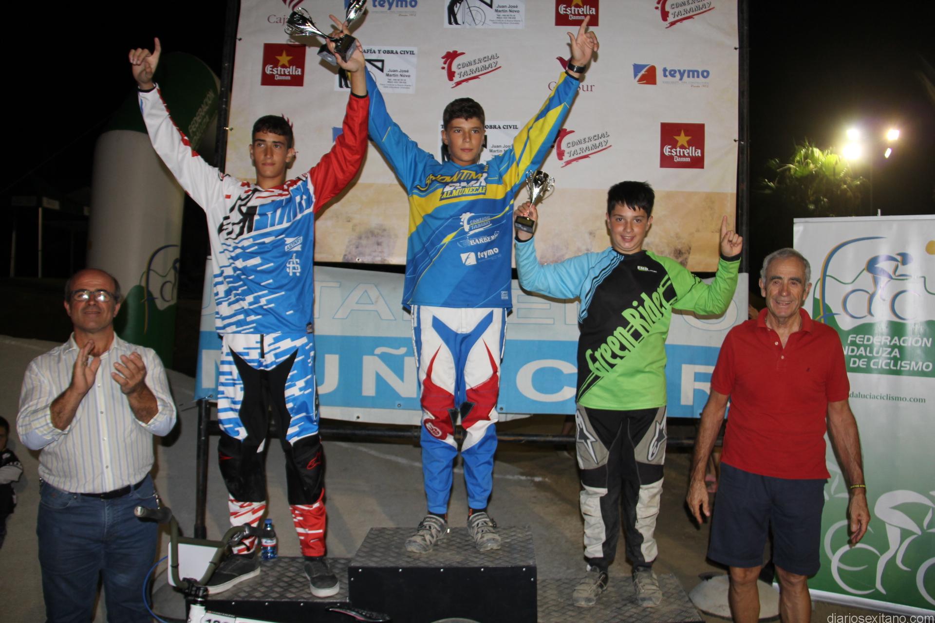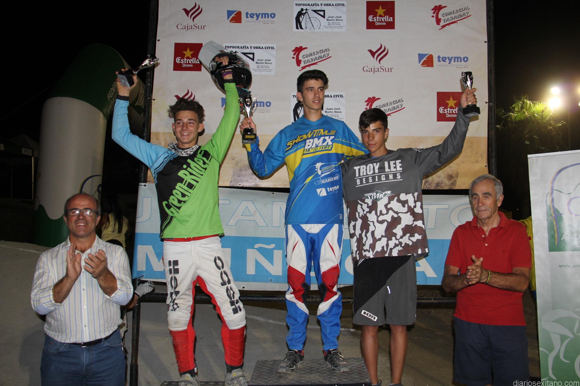 Álvaro Valderrama Barbero (7-8 años), Mario Ruiz Jiménez (13-14 años) y Juan Ruiz Jiménez (17-18 años), han conseguido proclamarse campeones de sus respectivas en la Copa de Andalucía BMX 2016 al concluir el circuito. Como cuarto podio y proclamándose subcampeón en la categoría cruiser ha sido el sexitano y máximo responsable del club, Álvaro Pérez Juárez.