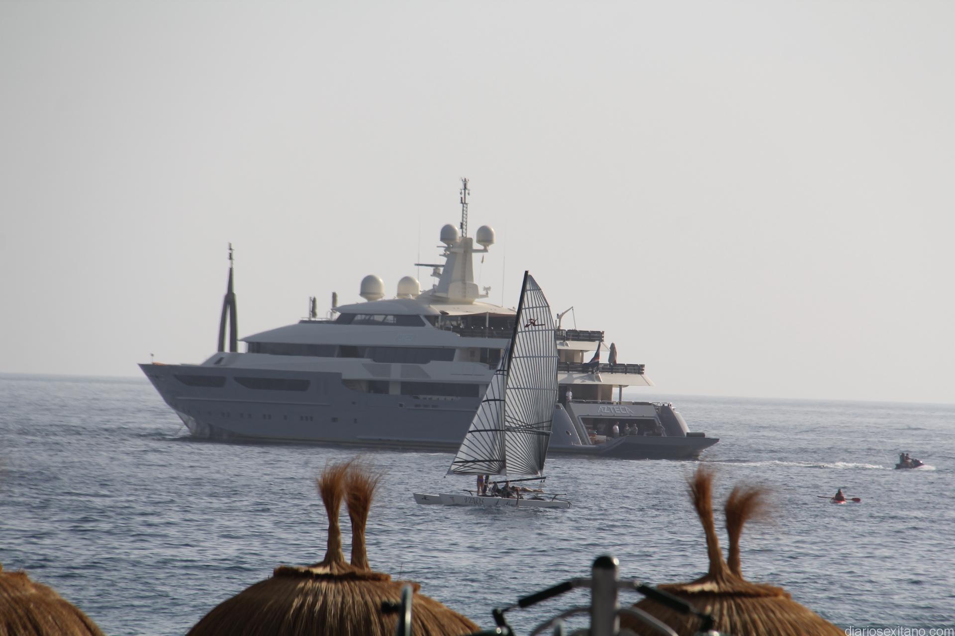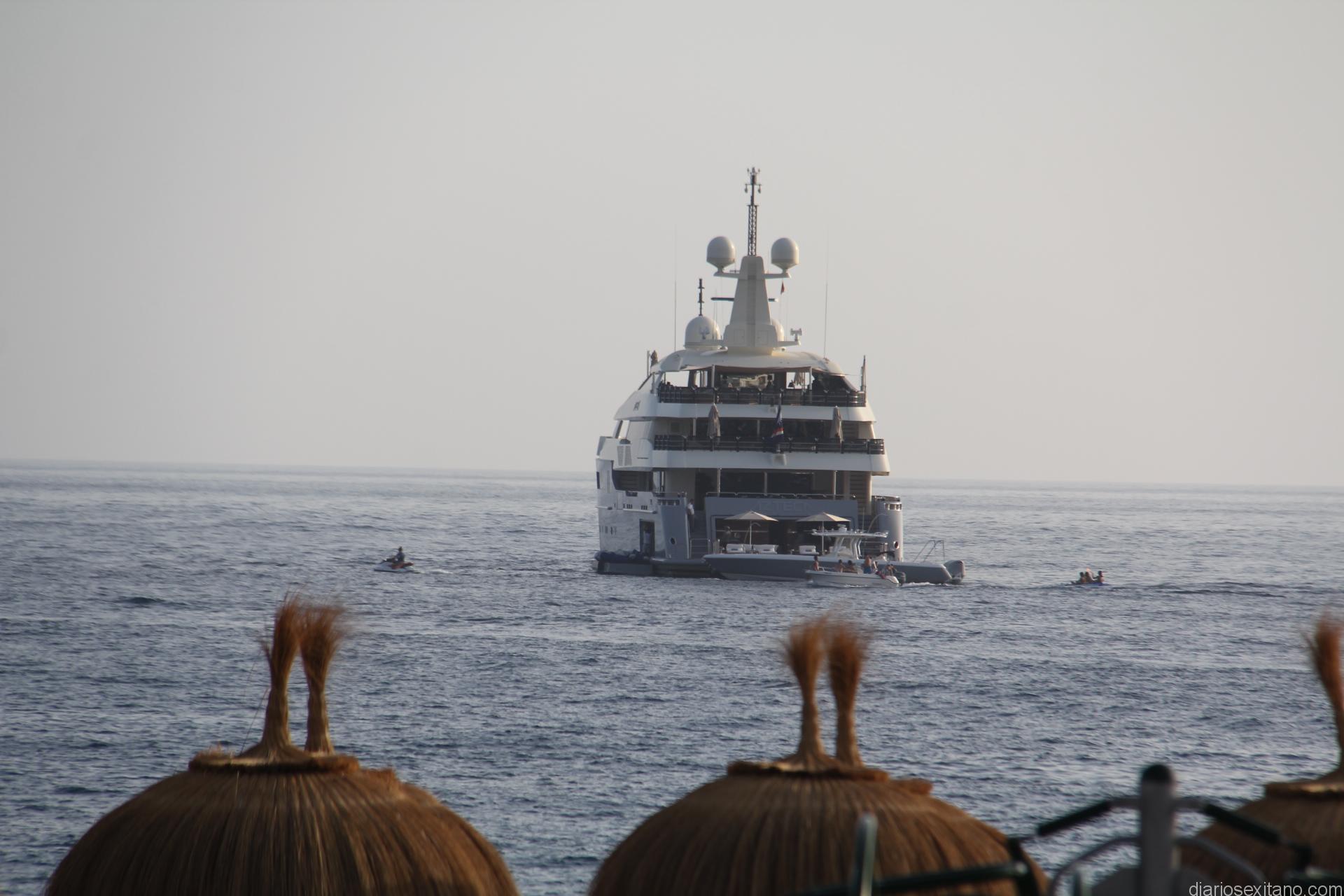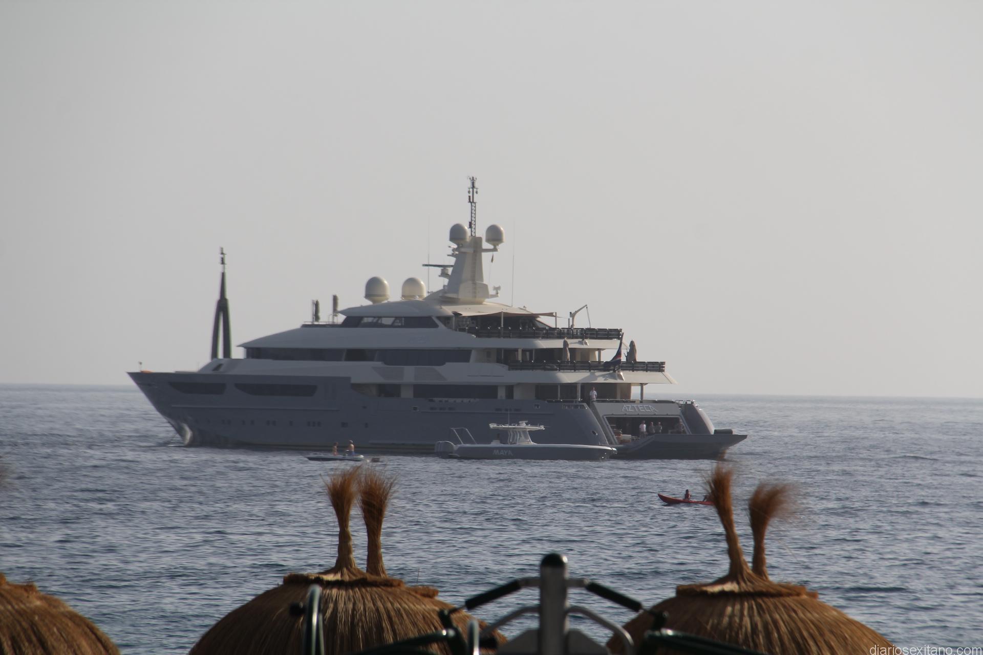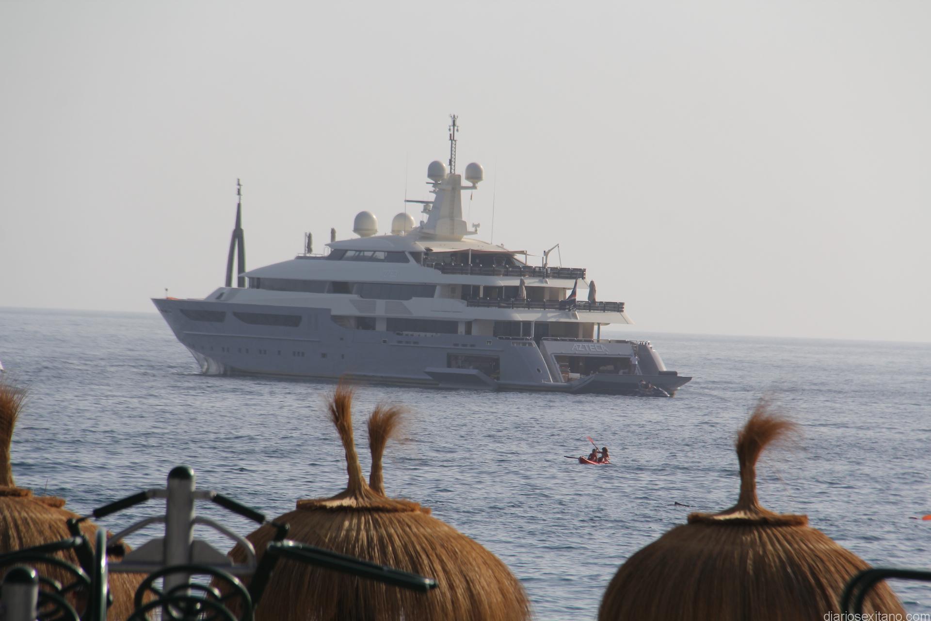 La bahía de La Herradura recibió en la tarde de ayer la visita de un superyate Azteca. La expectación e imagen del barco anclado casi en el centro de la bahía herradureña fue enorme por vecinos y bañistas que llenaban la playa en el primer día de agosto.
