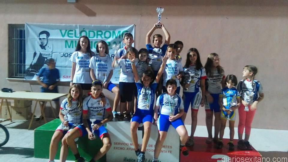 El Ciclismo Sexitano sigue triunfando en el Circuito Provincial de Granada en las categorías escuelas y cadetes, como así lo demuestran los ocho podios conseguidos en la prueba denominada “Trofeo San Agustín” celebrada este pasado fin de semana en el velódromo de Santa Fe y en el que participaron unos 80 ciclistas, según el coordinador, Francisco Álvarez Vinuesa.