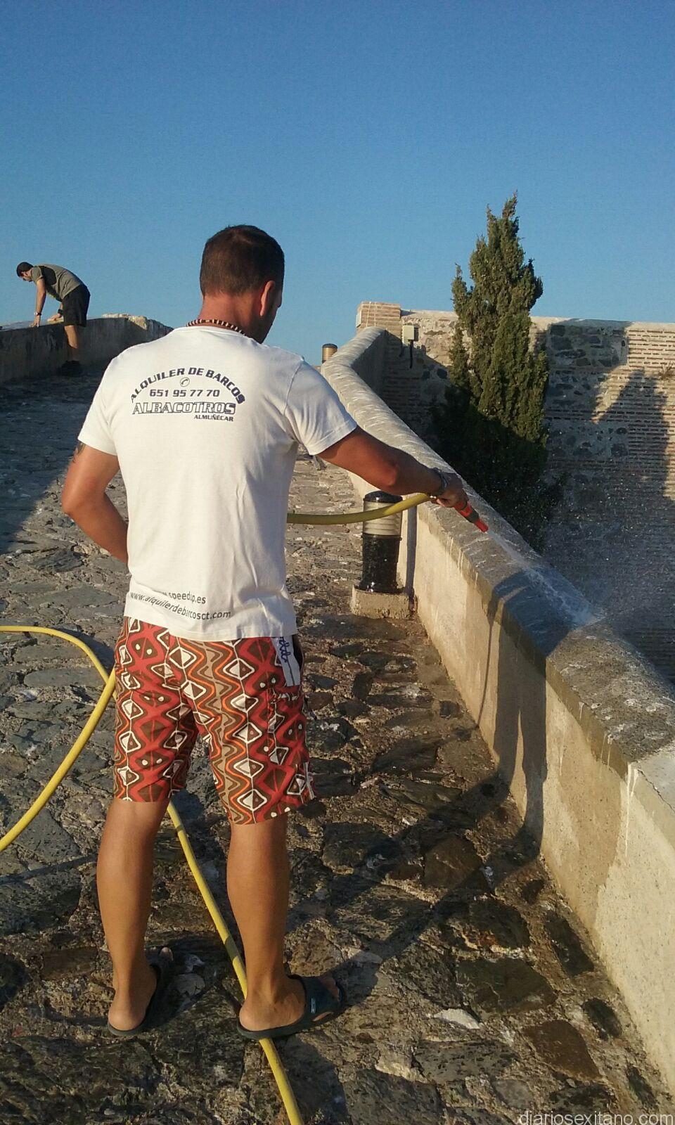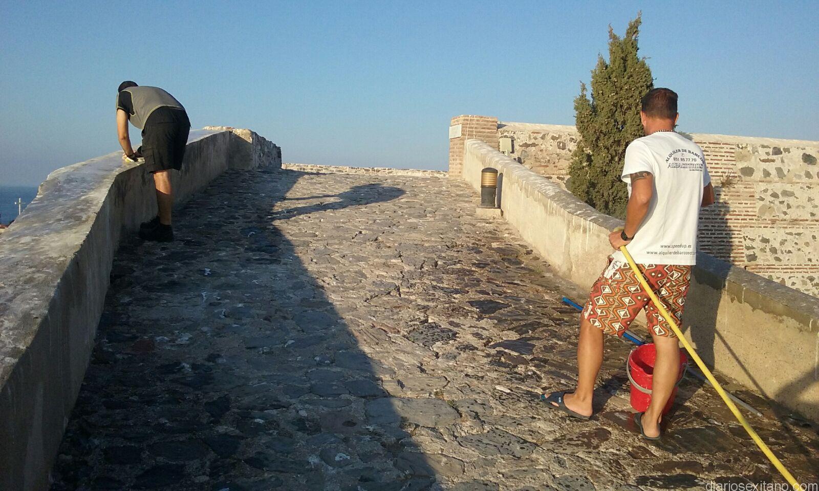 Hoy han finalizado los trabajos de limpieza especial de excrementos de las gaviotas en el Castillo de San Miguel que ha llevado a cabo el Ayuntamiento de Almuñécar esta semana ante el impacto que provocaba, especialmente, en la zona sur del este monumento, cerca del acceso a la zona conocida como La Coracha, según ha informado el concejal de Medio Ambiente, Luis Aragón.