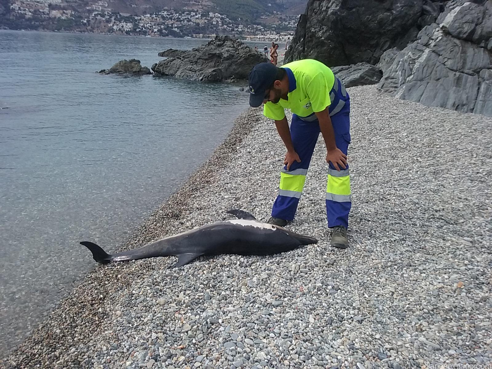 Un delfín joven ha sido hallado muerto en la playa de La Herradura, en concreto en la zona conocida como La Caleta, colindante a la Punta de la Mona.