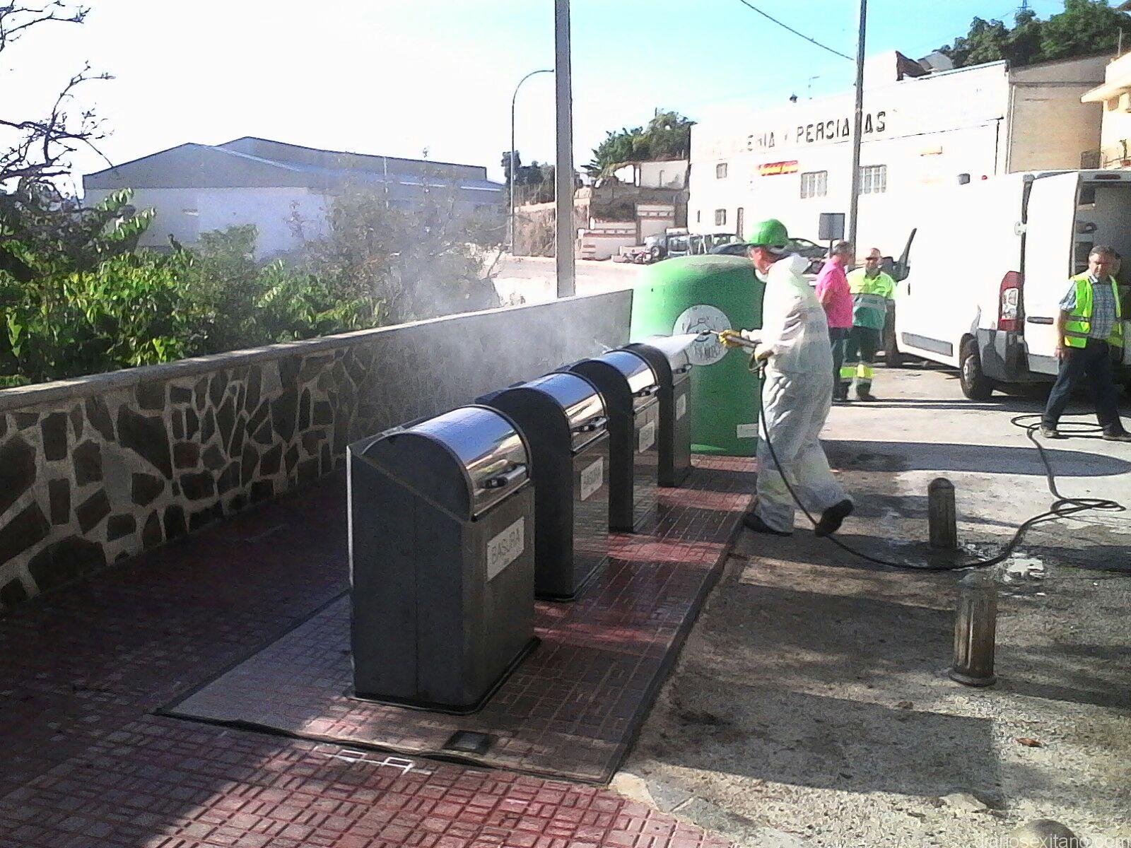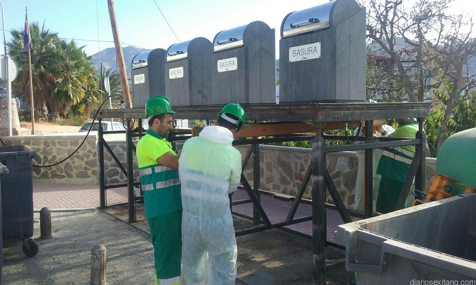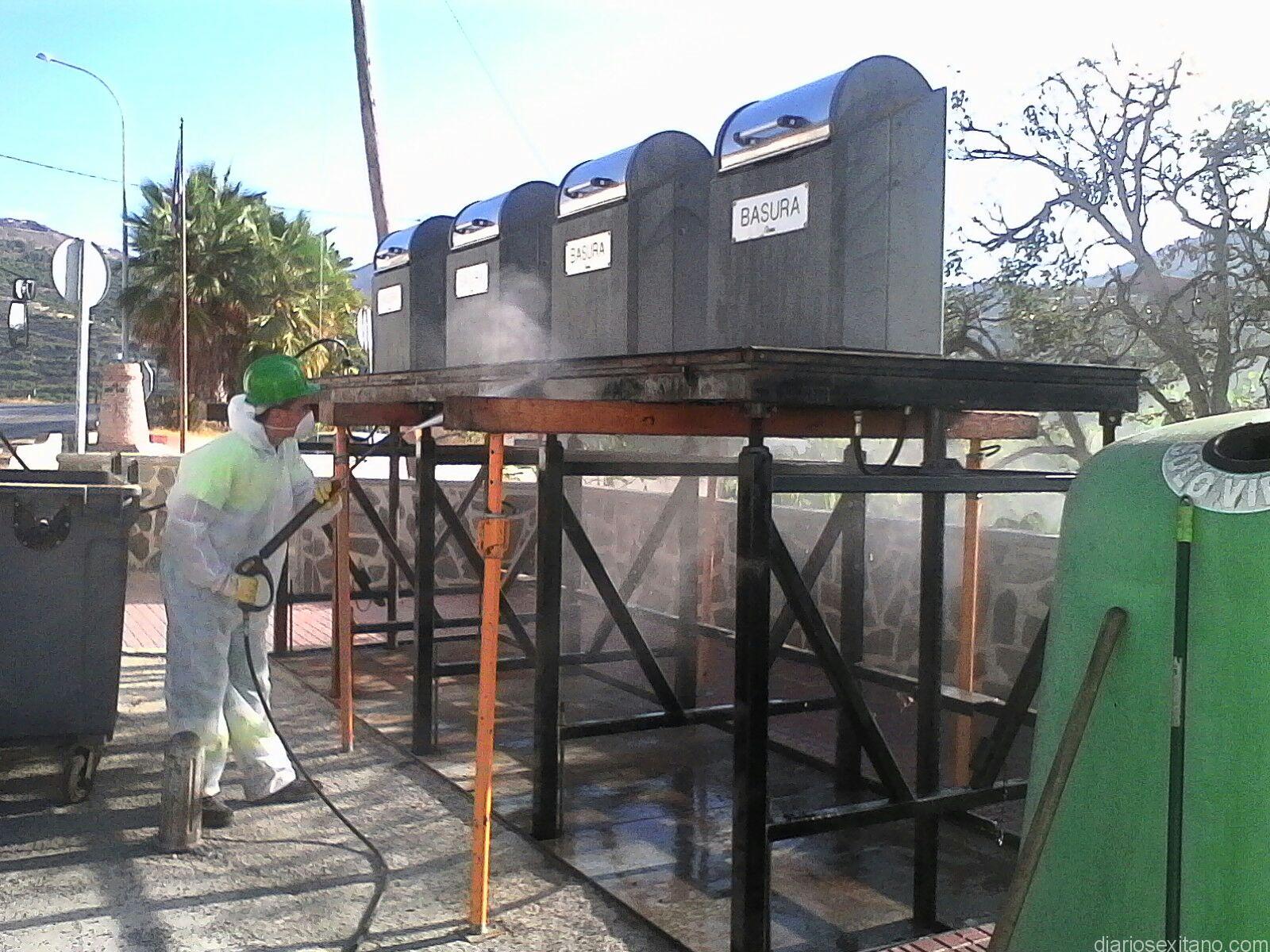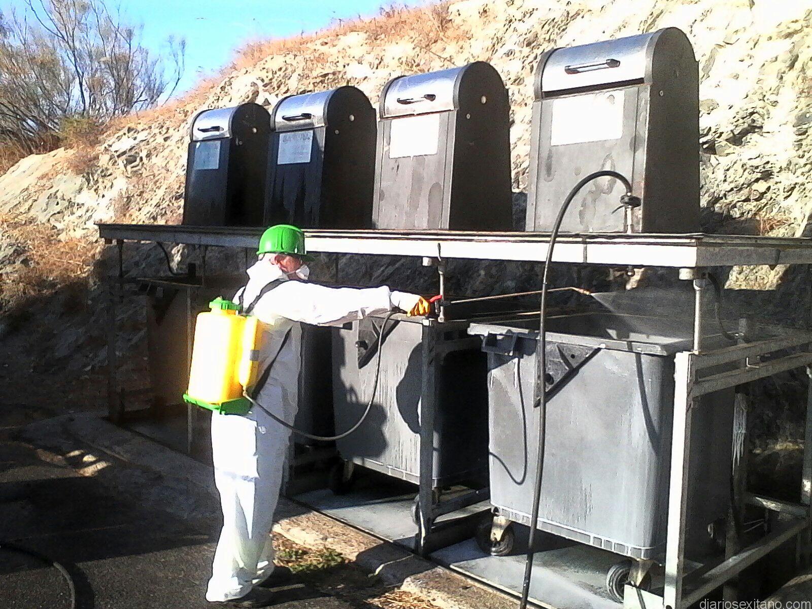 Según manifestaba el responsable municipal, esta tarea, que se lleva a cabo cada dos meses, llega tras el verano y se aplicará sobre la totalidad de los 15 grupos de contenedores que se reparten por los barrios sexitanos de Torrecuevas, Los Marinos, Rio Verde-La Paloma, Barrio Espinar, Las Maravillas y junto Mercado.
