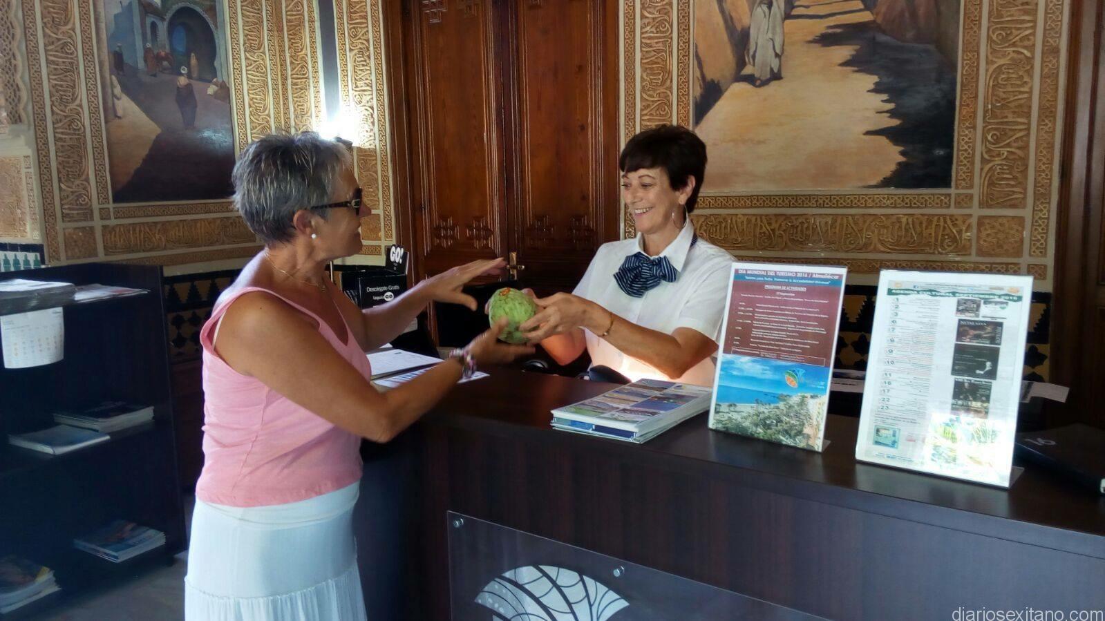 Otra actividad prevista, ha sido el obsequio de frutas tropicales a los turistas que visitaron, la citada oficina de turismo.