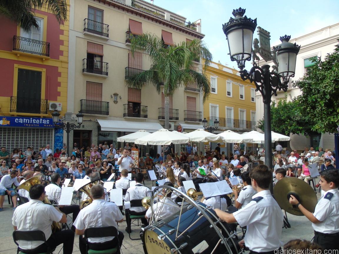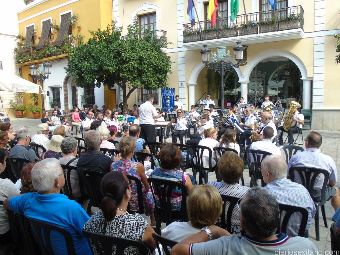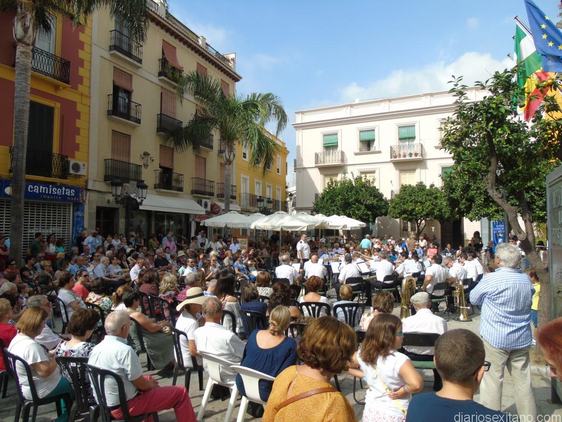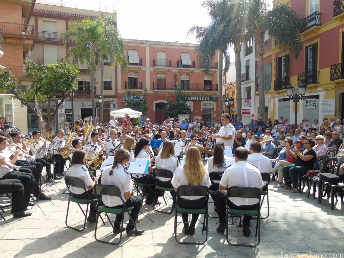 La Banda Municipal de Música de Almuñécar ha comenzado hoy la temporada de conciertos con una gran actuación en la sexitana y céntrica plaza de la Constitución y en una jornada de temperatura veraniega.