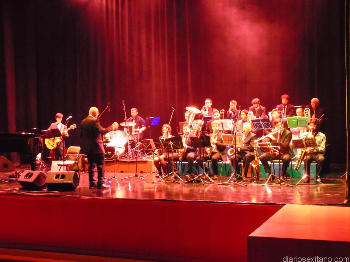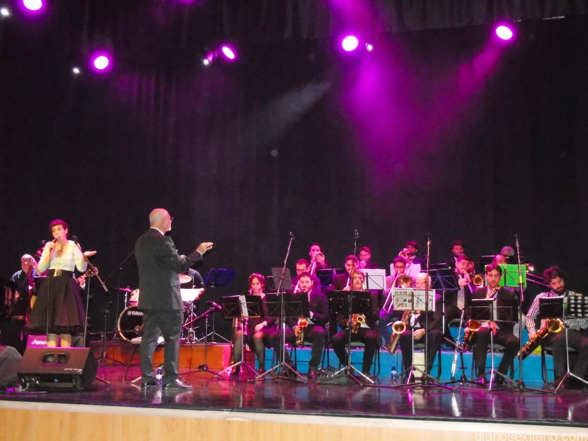 Anoche en el escenario sexitano el público se deleitó con los temas musicales que recoge el primer disco, “Jazz’tamos aquí”, donde repasa algunos de los grandes clásicos del repertorio vocal-instrumental de las grandes formaciones orquestales de los años 40 y 50.
