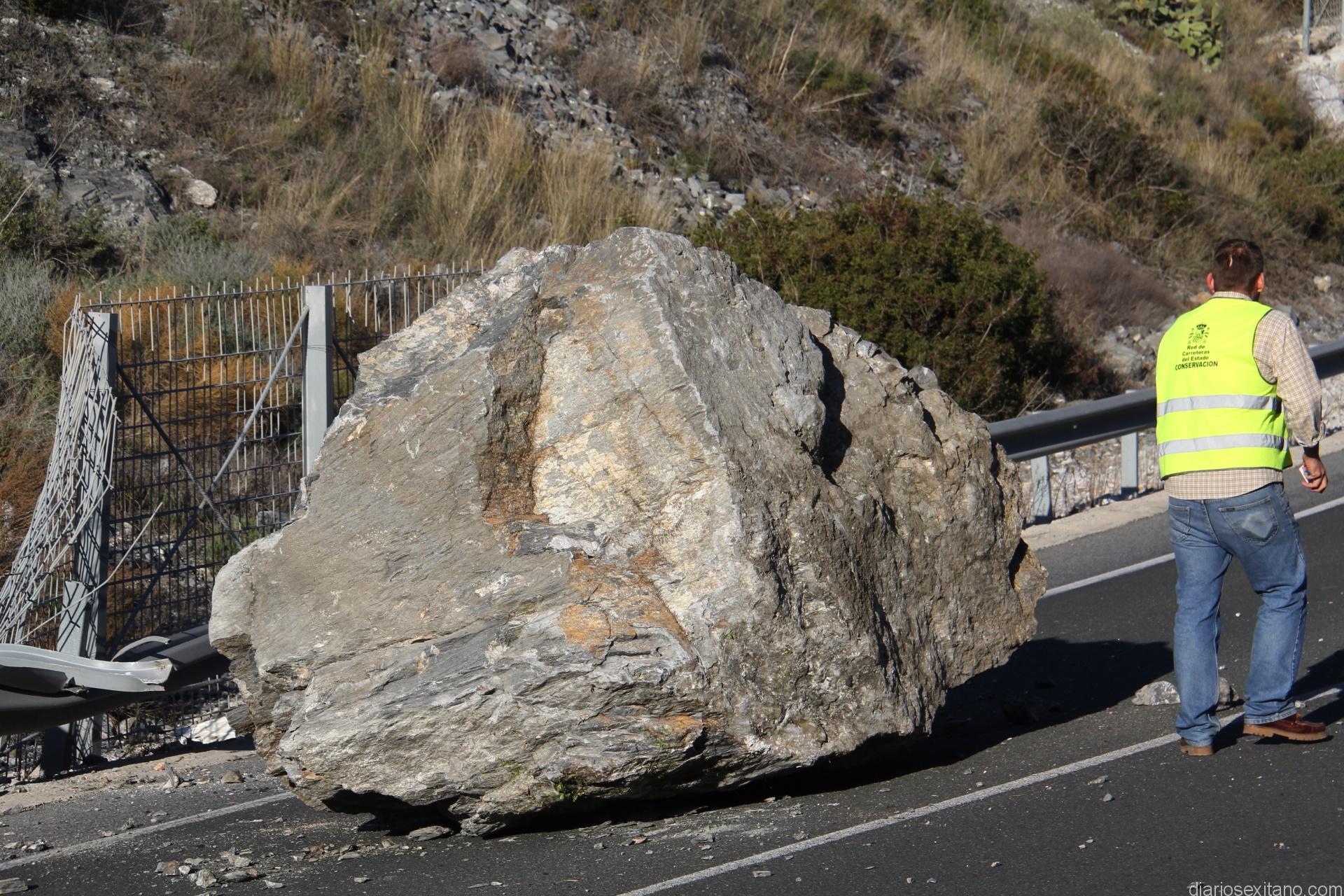 Según la Policía Local de Almuñécar, el hecho ha ocurrido sobre las 15,30 horas “y afortunadamente no ha provocado daños personales, ni tampoco en vehículos que circulaban por la zona. Los agentes dieron aviso a la empresa de mantenimiento de la CN 340 y a la Guardia Civil de Tráfico.