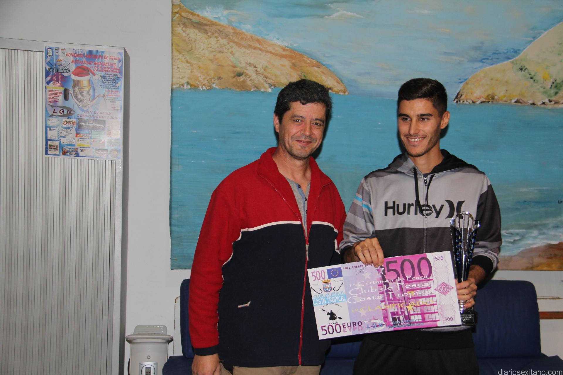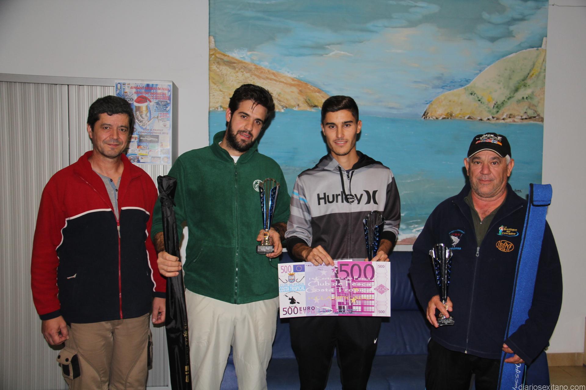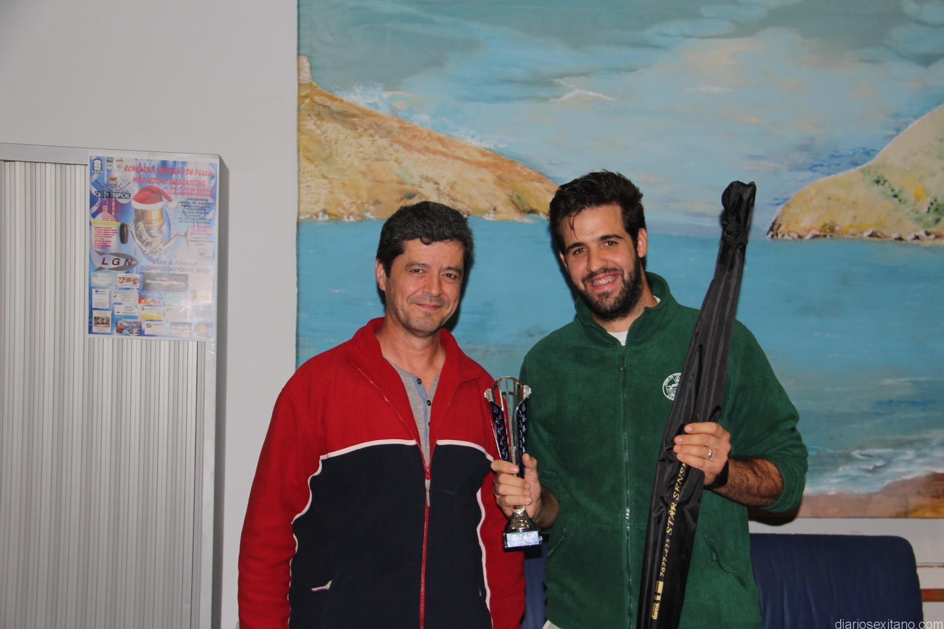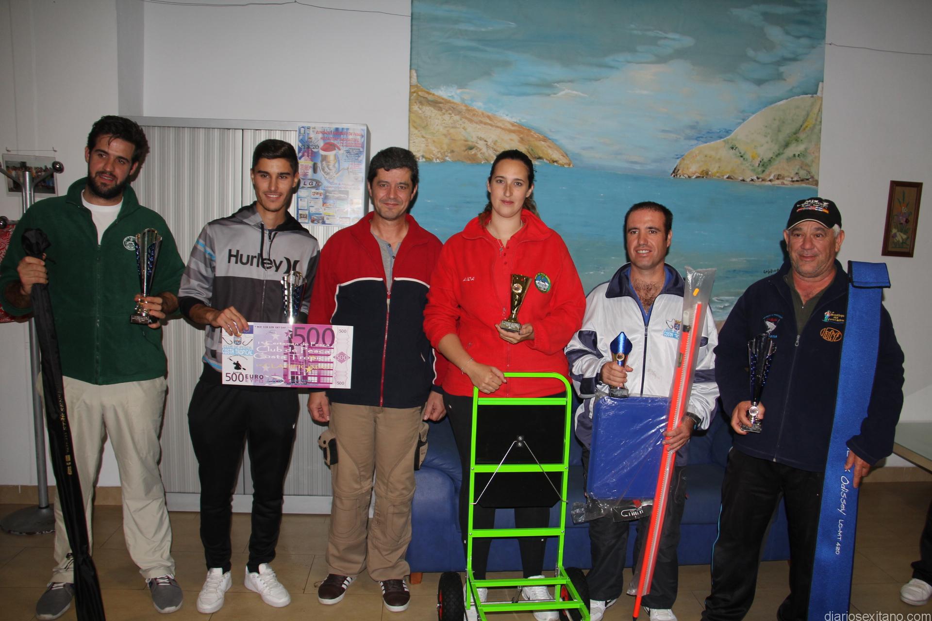 En este evento, organizado por el Club de Pesca Costa Tropical, contando con la colaboración del Patronato Municipal de Deportes y numerosas empresas, también hubo premio para el pescador que capturó la pieza mayor que fue David González, del Club Costa Tropical, que se hizo con una percha de competición con bandeja y a la primera dama, Aida Rivas Castro, del Club de Pesca Dauro, que fue premiada con una carro de pesca.