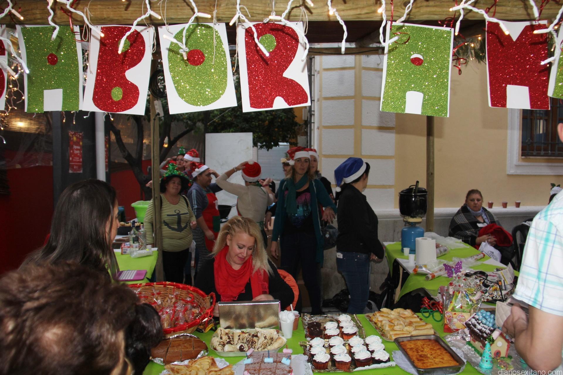 La popular plaza sexitana se ha convertido en un espacio de sabor y color con los postres navideños elaborados por los citados colectivos.