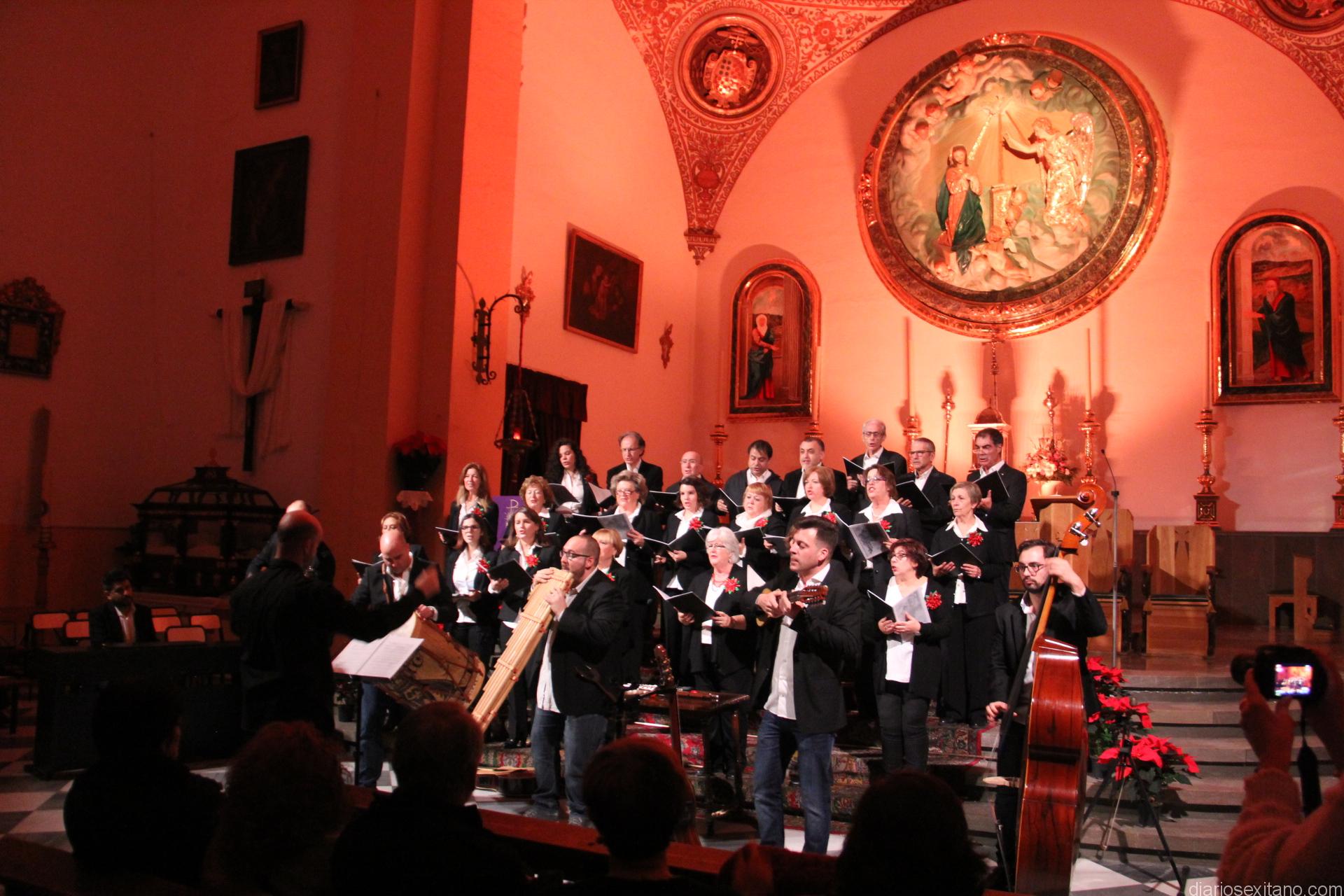 El acto, que estuvo organizado por la Concejalía de Cultura del Ayuntamiento de Almuñécar, lo abrieron dos villancicos criolllos cantados por Vientos del Sur, que por cierto fueron grabados para un video promocional turístico de la Mancomunidad. Después se sumaría el Coro “Ciudad de Almuñécar” que cantaron durante más de una hora.