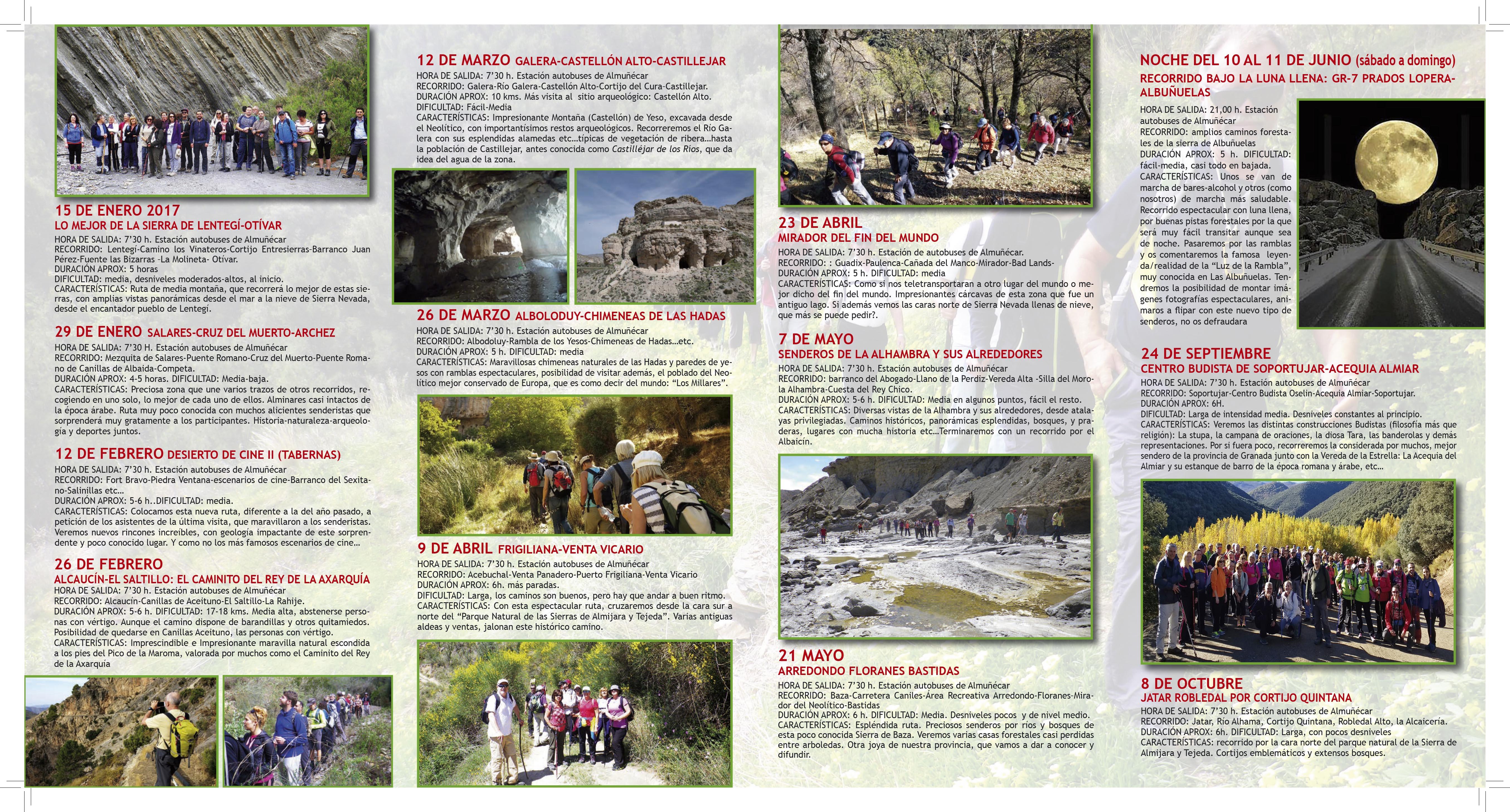 Esta será la primera de la casi veintena de rutas que recoge el nuevo programa de senderismo que no solamente se ha consolidado en el tiempo sino que supone una de las ofertas más importantes para conocer los mejores parajes de la provincia granadina y también zonas destacadas de la comarca de la Axarquía malagueña o el desierto almeriense de Tabernas.