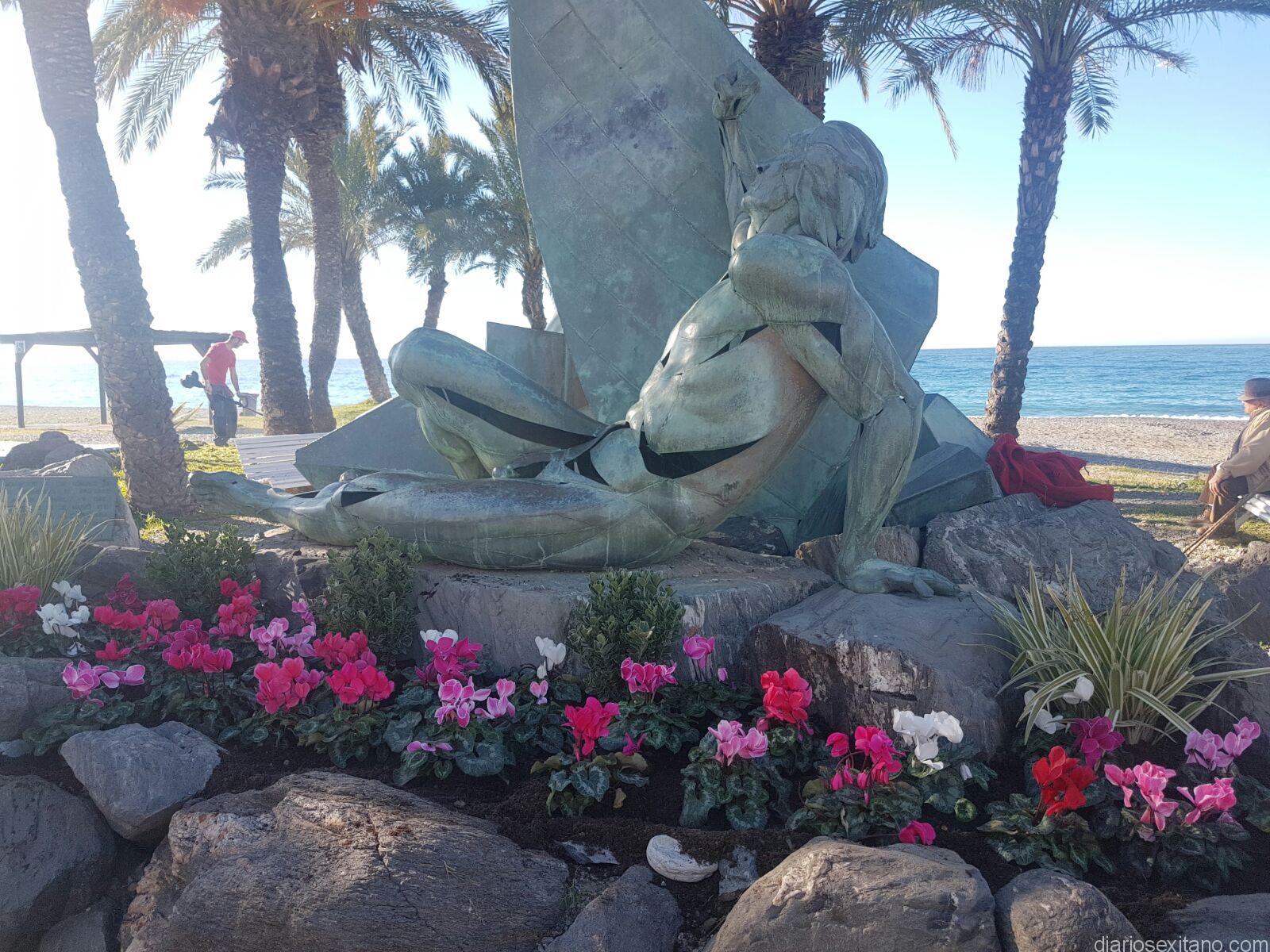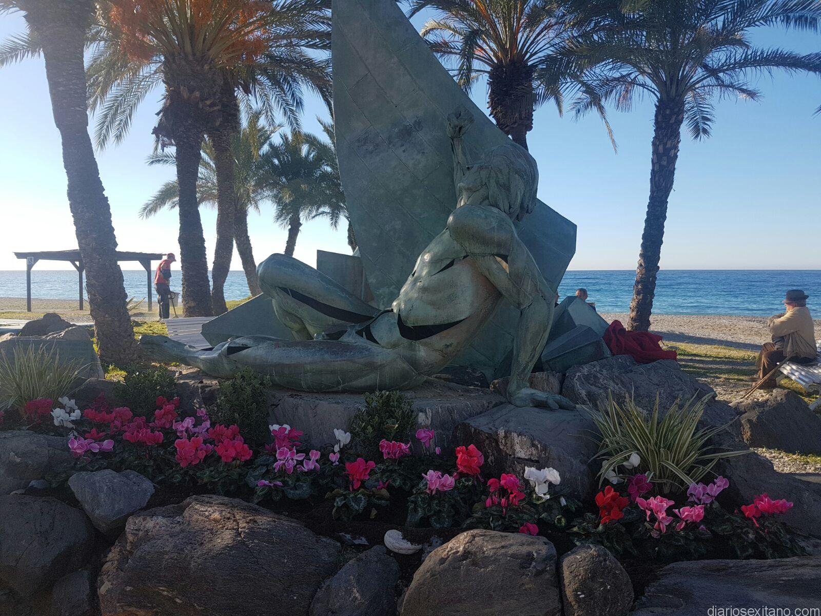Y es que hoy nos hemos encontrado con el entorno del Monumento al Hombre del Mar de La Herradura muy mejorado con unas flores que destacan aún más la escultura realizada por Miguel Moreno, que recuerda el Naufragio de la Armada en la bahía herradureña.