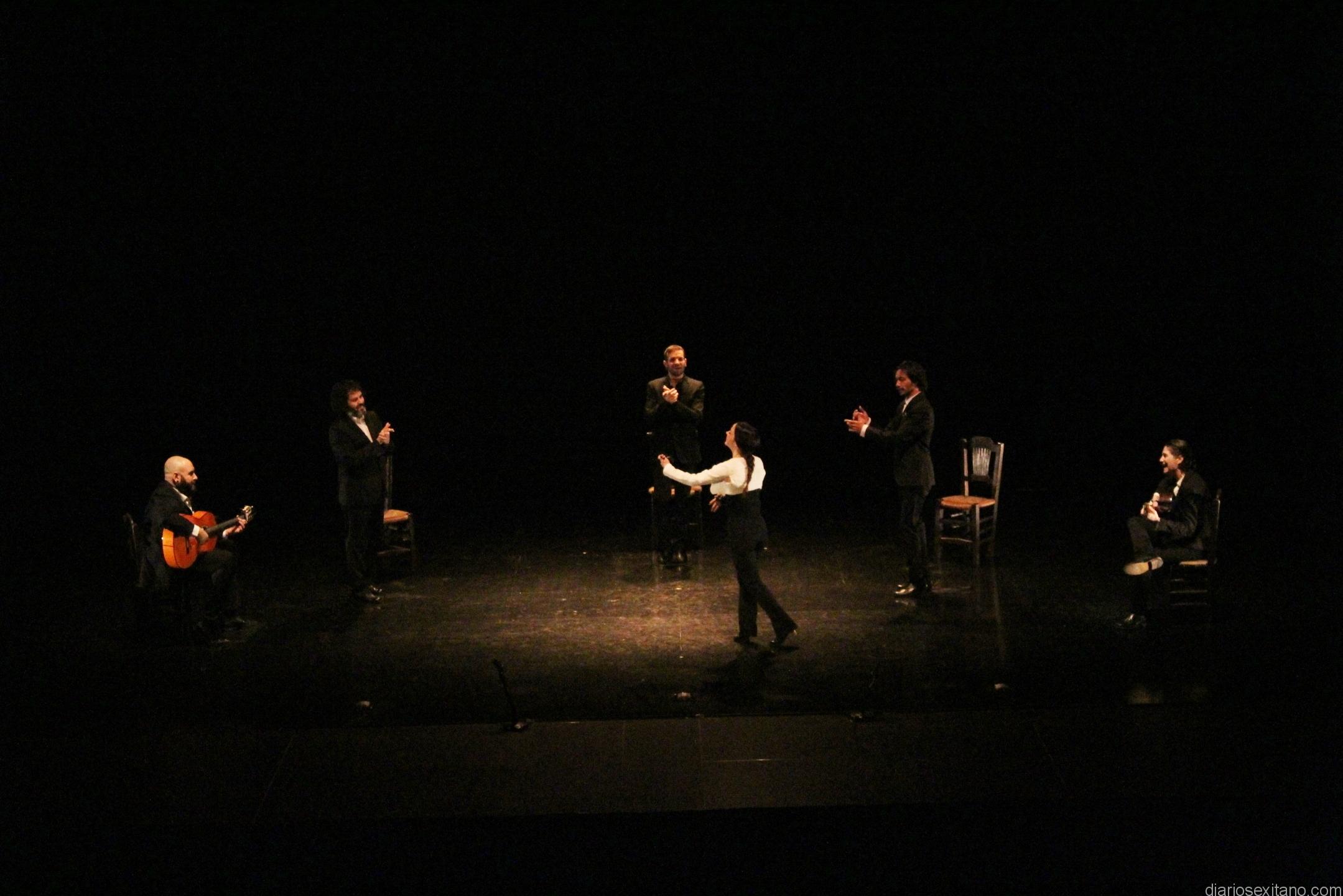 En la actuación destacó la existencia de dos emociones muy opuestas en el flamenco: la alegría y la tristeza se reflejan en palos distintos, como soleá y alegrías, taranto y tangos. Para ello contó con la composición musical en off de Pablo Martín Jhones y con la música en directo que interpretan Ismael Fernández y José Ángel Carmona, al cante, y Antonia Jiménez y Pino Losada, a la guitarra.