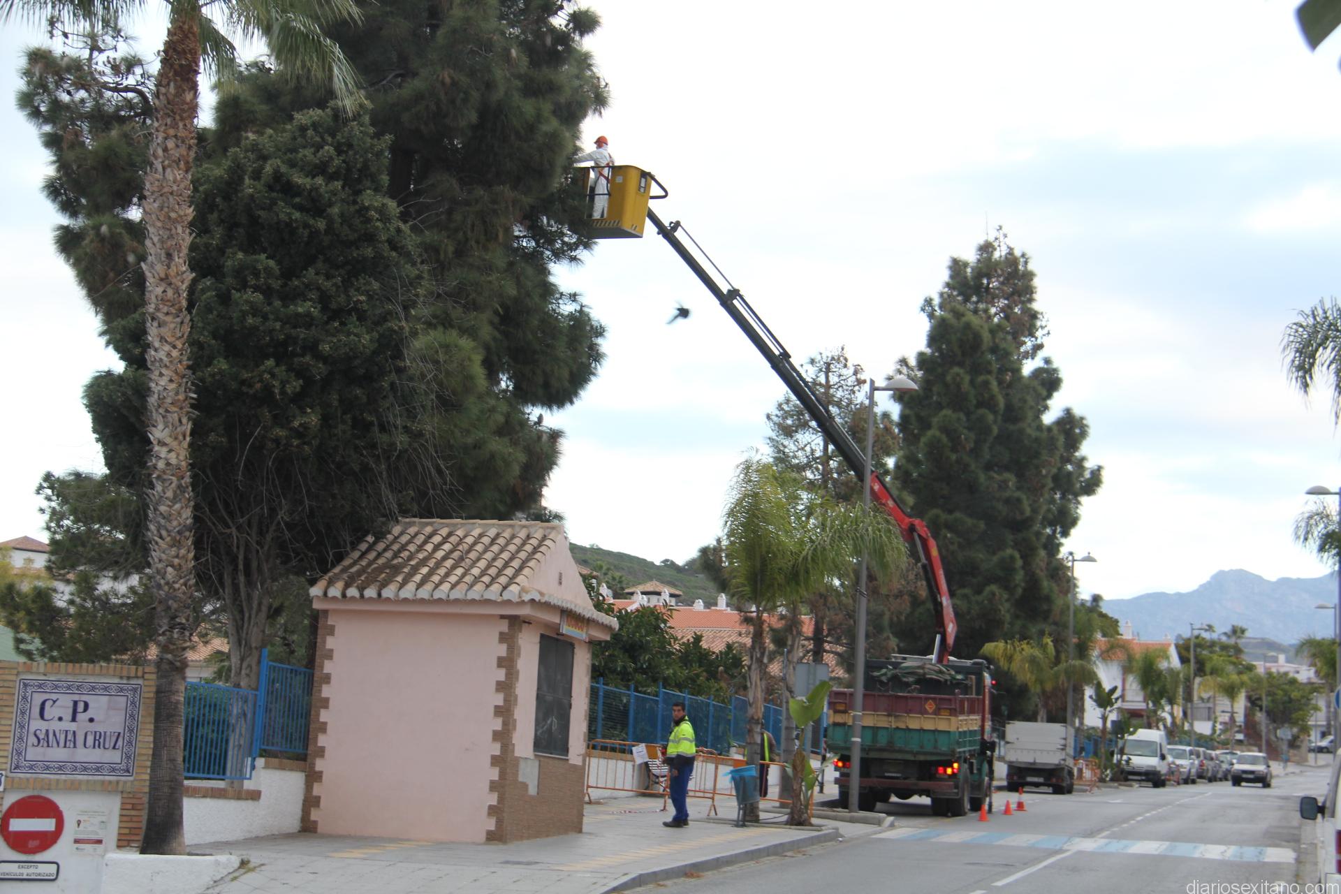 Atendiendo la solicitud de la dirección del Colegio Público La Santa Cruz de Almuñécar técnicos y operarios del Área de Medio Ambiente del Consistorio sexitano han llevado a cabo una actuación de choque contra la plaga de procesionaria, que ha afectado en varios pinos situados en los jardines ubicados en el patio del citado colegio ante los problemas de salud que estaba provocando en algunas personas.