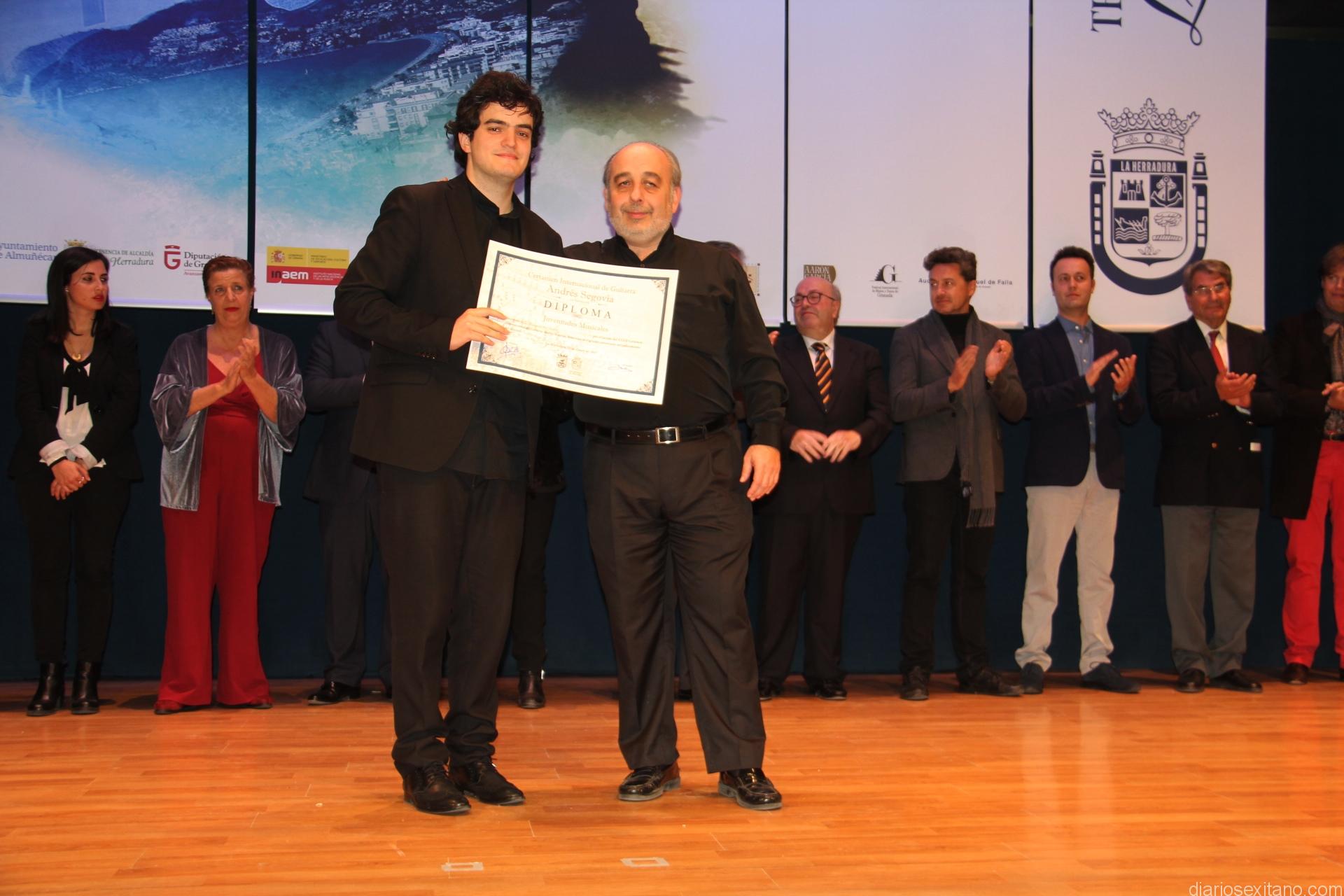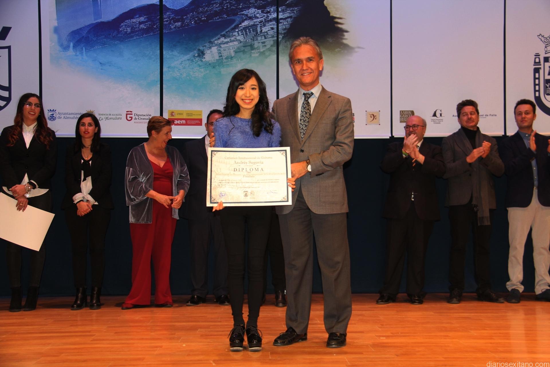 El acto de entrega de premios, celebrado tras la gran final, estuvo presidido por la alcaldesa, Trinidad Herrera, junto con el teniente de alcalde, Juan José Ruiz Joya y la edil de Cultura, Olga Ruano asi como el vicerector de Extensión Universitaria de la Universidad de Granada, Víctor Medina, y el presidente de Juventudes Musicales, Juan José Cañivano que se encargaron de hacer entrega de los distintos galardones.