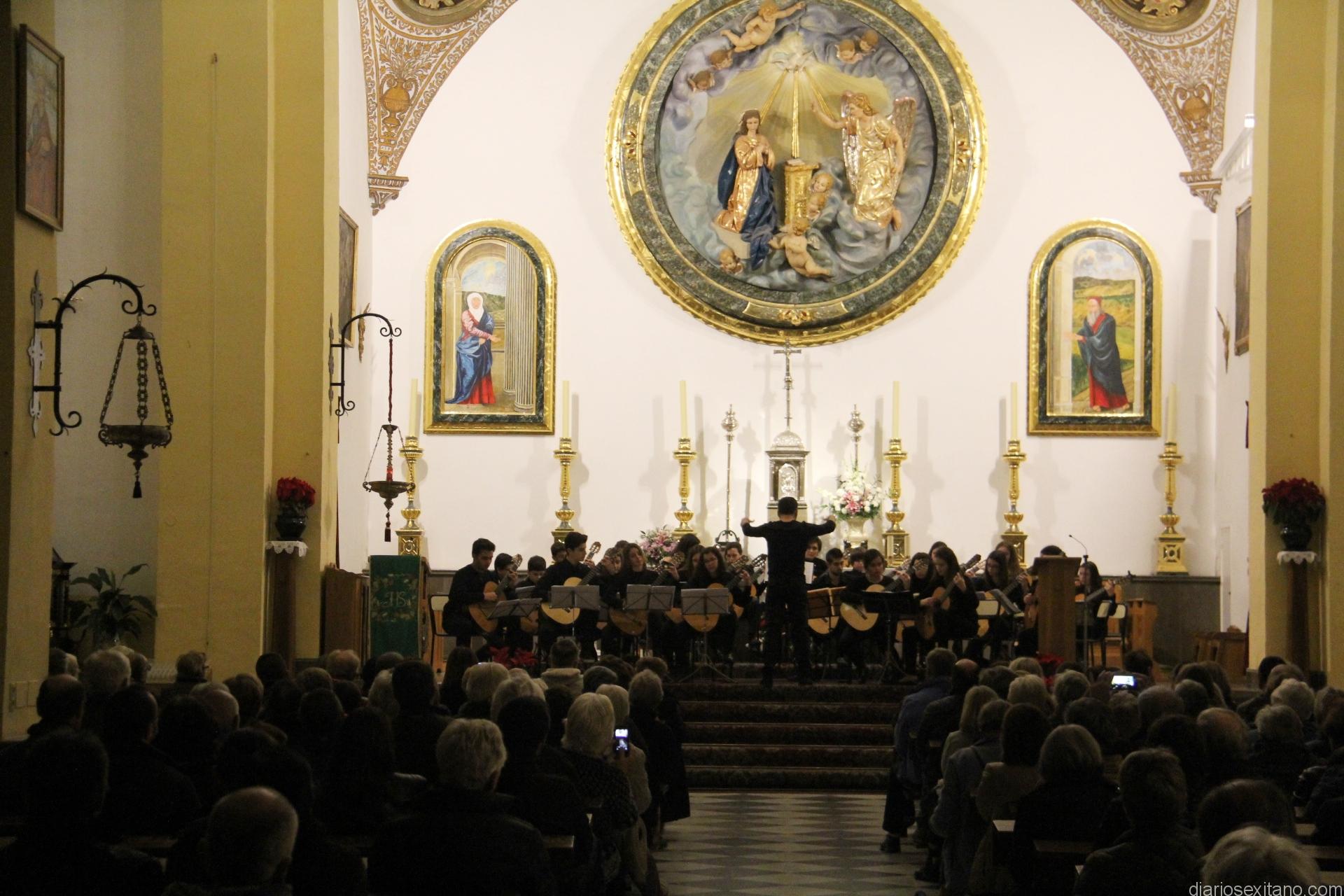 La Orquesta de Guitarras del Conservatorio de Motril ofreció este pasado domingo un bello concierto en la Iglesia Parroquial de Almuñécar donde sonaron temas musicales de compositores como Albéniz, Falla, Tárrega y Piazzolla, entre otros.