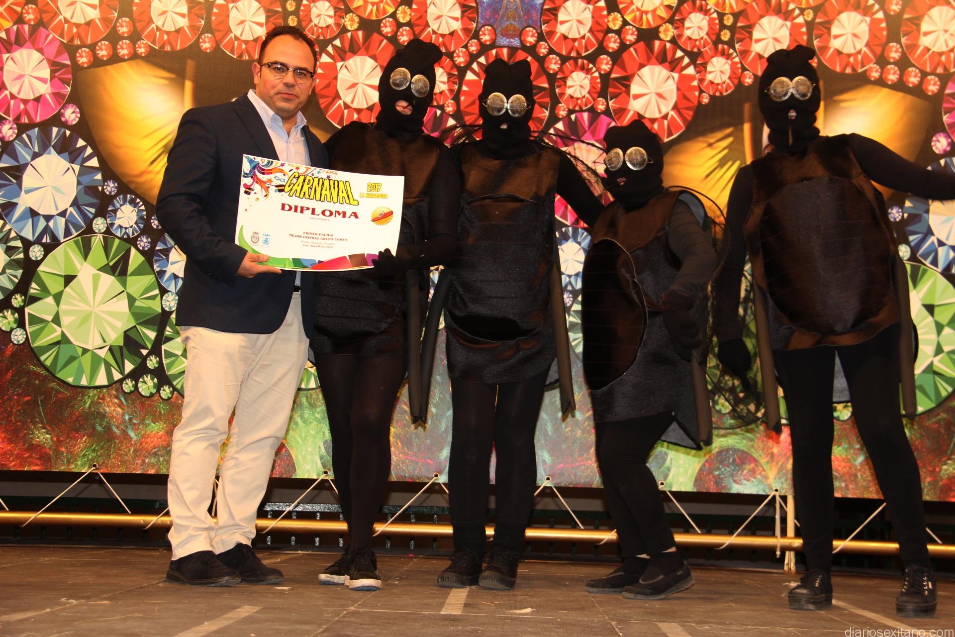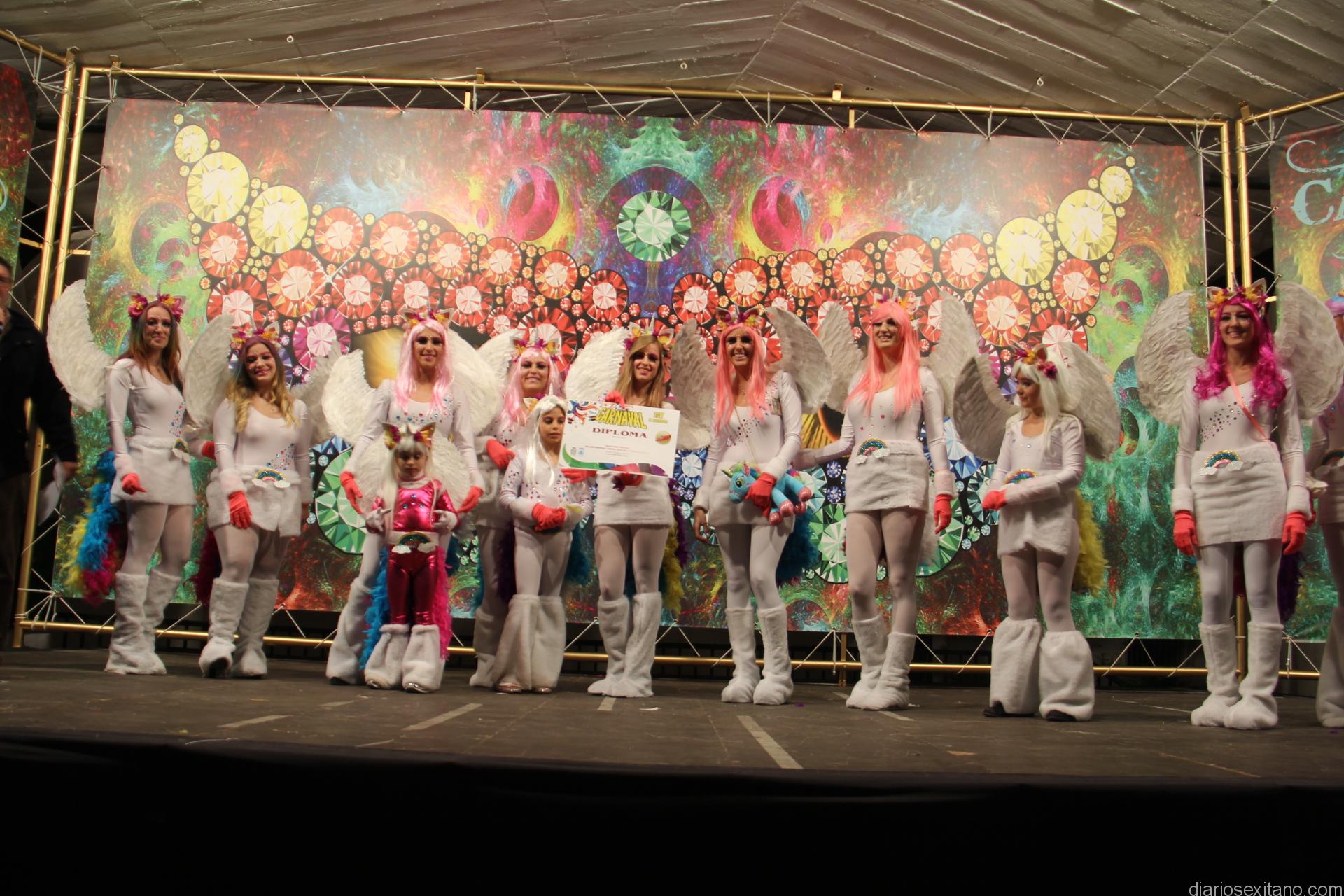 Tras el desfile el jurado deliberó y se procedió a conceder los premios que recayeron. En el apartado individual ganaba el espantapájaros y el dúo “las fantasías”, después llegaron galardones para “Las Moscas” y en el apartado de grupo largo las premiadas fueron las “Unicornios” y la “Tribu Hopo”.