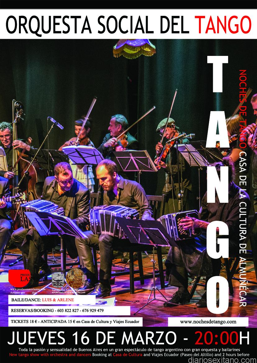 La Orquesta Social del Tango se presenta este jueves en la Casa de la Cultura de Almuñécar con un gran concierto donde una decena de músicos, acompañados con el baile de Luis y Arlene, ofrecerán un gran espectáculo para todos los sentidos.