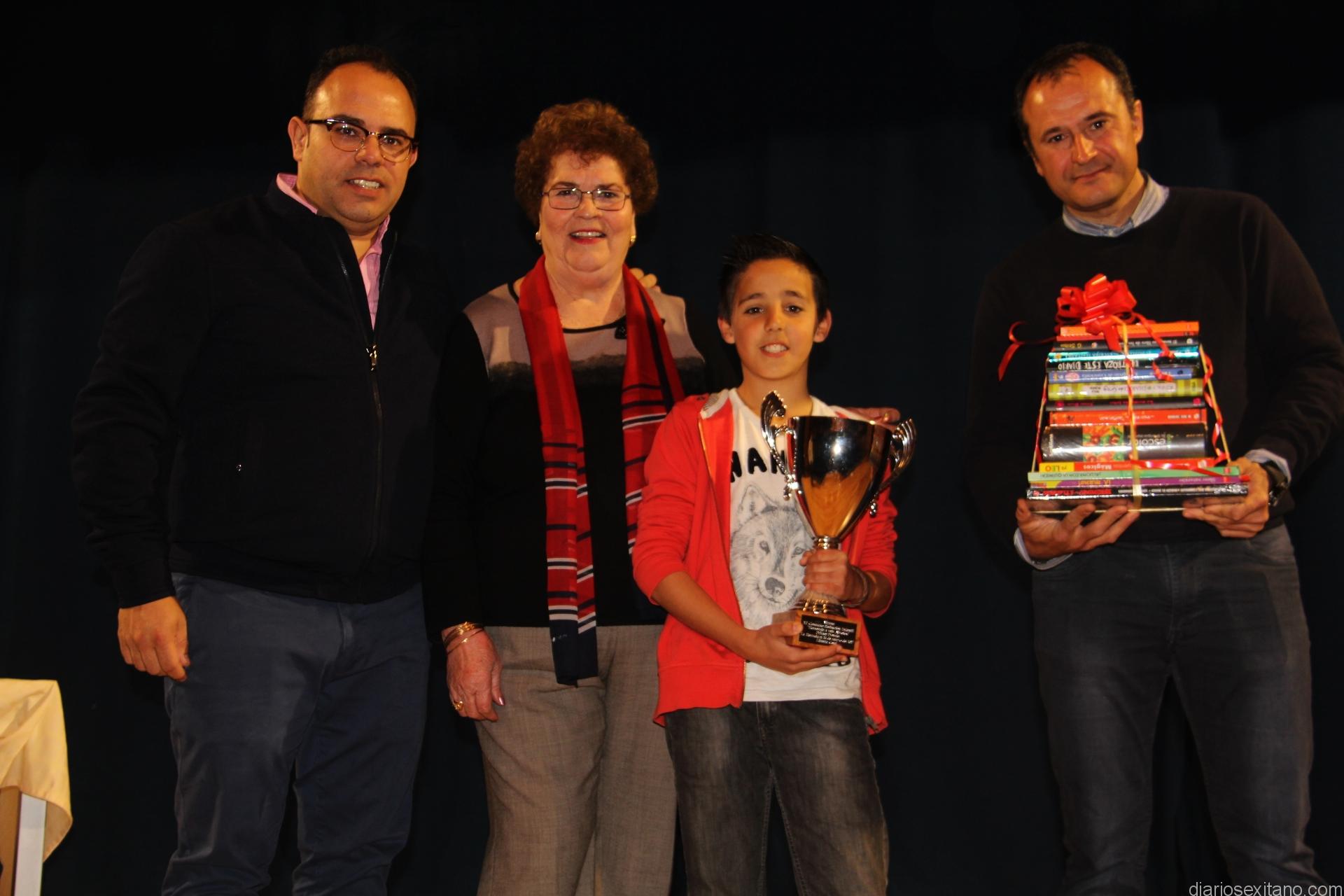 Samuel Alonso Heras gana el primer premio del XI Certamen Literario “Virana” de homenaje a los abuelos y se hizo con el trofeo y lote de libros con el que estaba dotado.