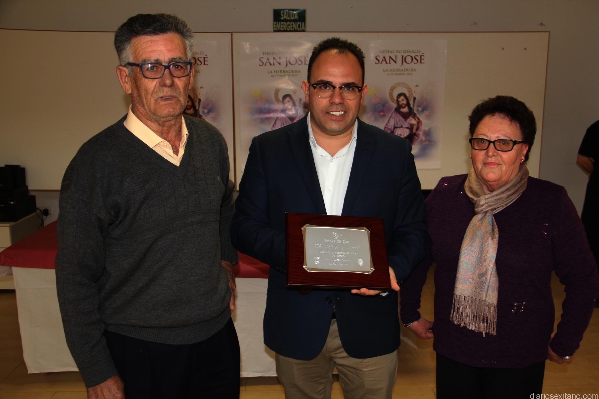 Durante el transcurso de la merienda se rindió a siete parejas que este año cumplen los 50 años de casados, las “Bodas de Oro”: Mari Carmen y Sebastián, Mari Carmen y Germán, José Manuel y María Celestina, Antonio y Marí Ángeles, Encarna y José Manuel, María Dolores y Daniel, Ana e Ignacio. Todos ellos recibieron una placa de recuerdo y el aplauso y felicitaciones de todos los asistentes.