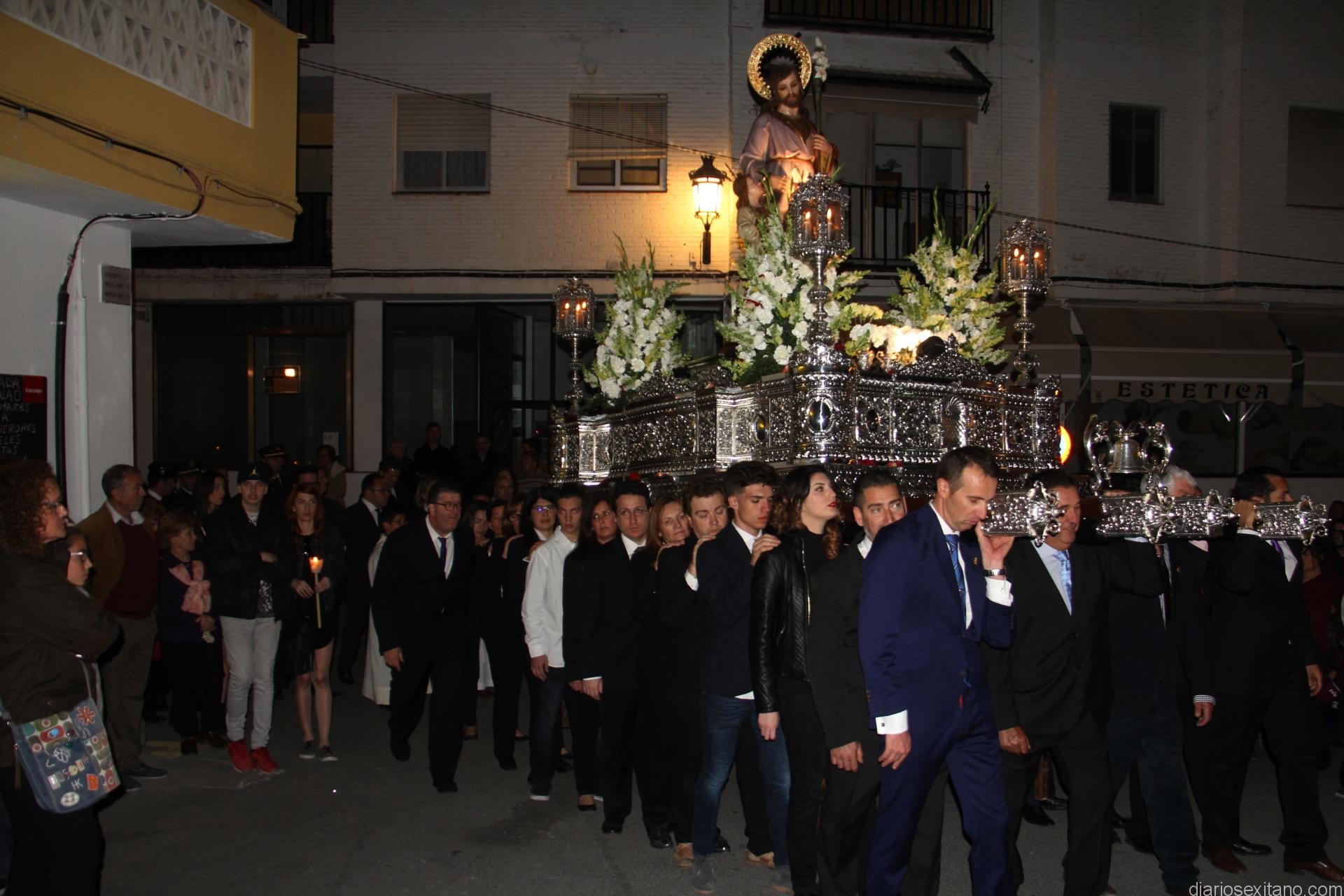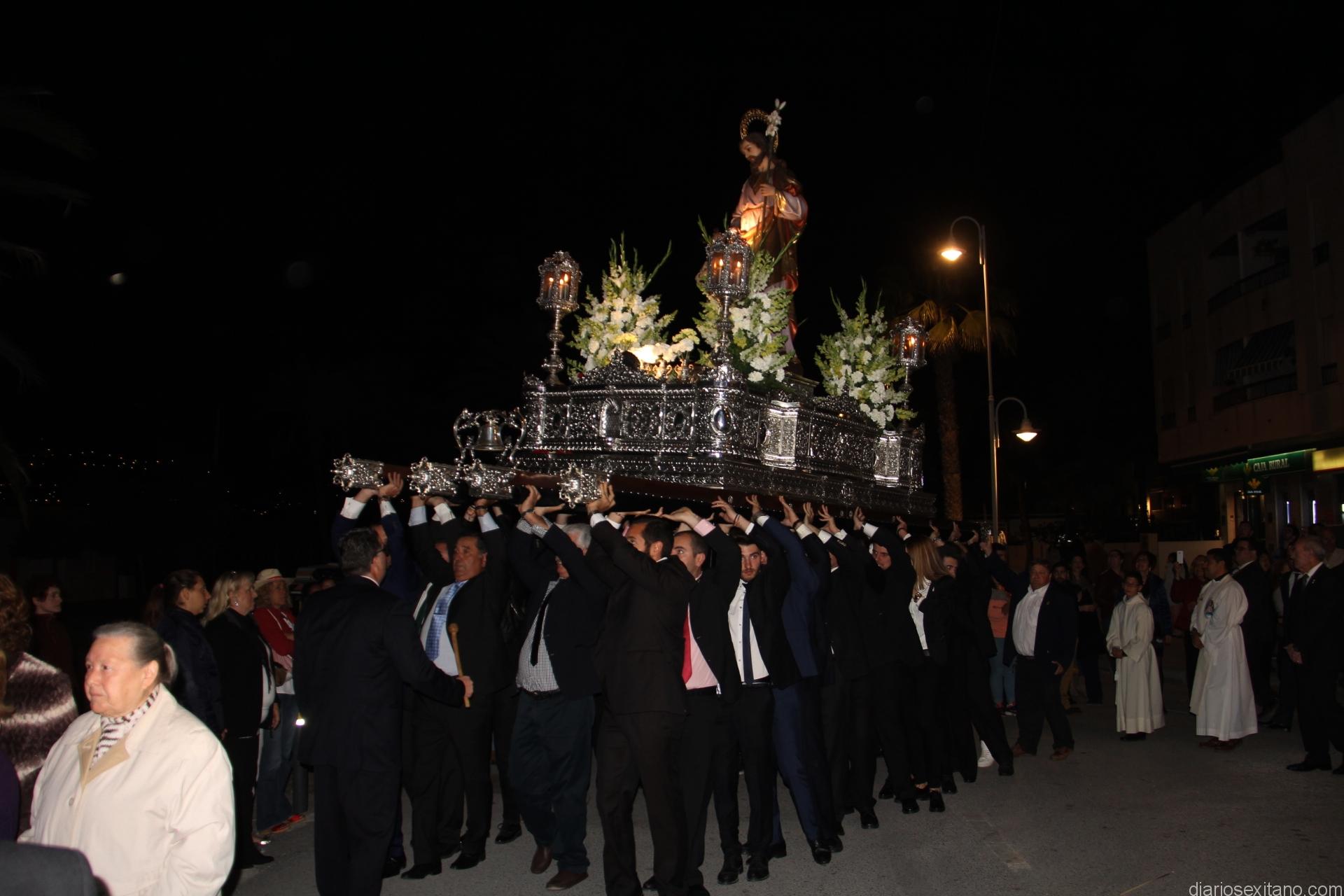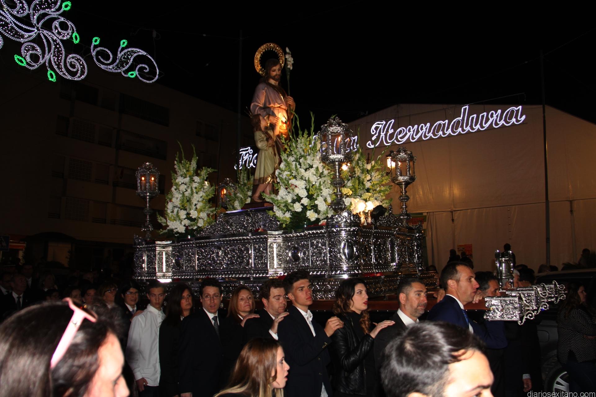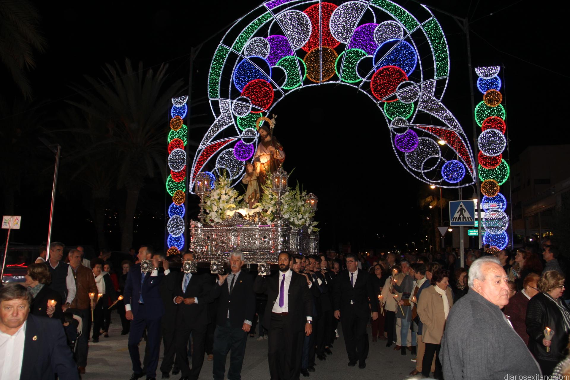La Imagen de San José partía de la Iglesia Parroquial para recorrer el centro de la localidad y acercarse hasta la playa. En el cortejo procesional religioso, presidido por el cura párroco, Néstor Robledo, estuvieron presentes las autoridades locales, encabezadas por la alcaldesa, Trinidad Herrera, y el primer teniente de alcalde y delegado de Servicios de La Herradura, Juan José Ruiz Joya, junto a otros corporativos. Durante las casi dos horas que se prolongó la procesión el acompañamiento musical estuvo a cargo del Banda de Tambores y Cornetas de La Sentencia de Almuñécar. Momentos destacados del cortejo estuvieron fue la llegada de la Imagen hasta la vial de la playa desde la Acera del Pilar y el final En ambos, además del sonido y vistosidad de los fuegos artificiales de la pirotecnia de Esteban Martín, destaca el esfuerzo y entrega de los horquilleros levantando a pulso el trono a las ordenes de Joaquín Ramírez y con la ayuda de Ernesto Barbero.