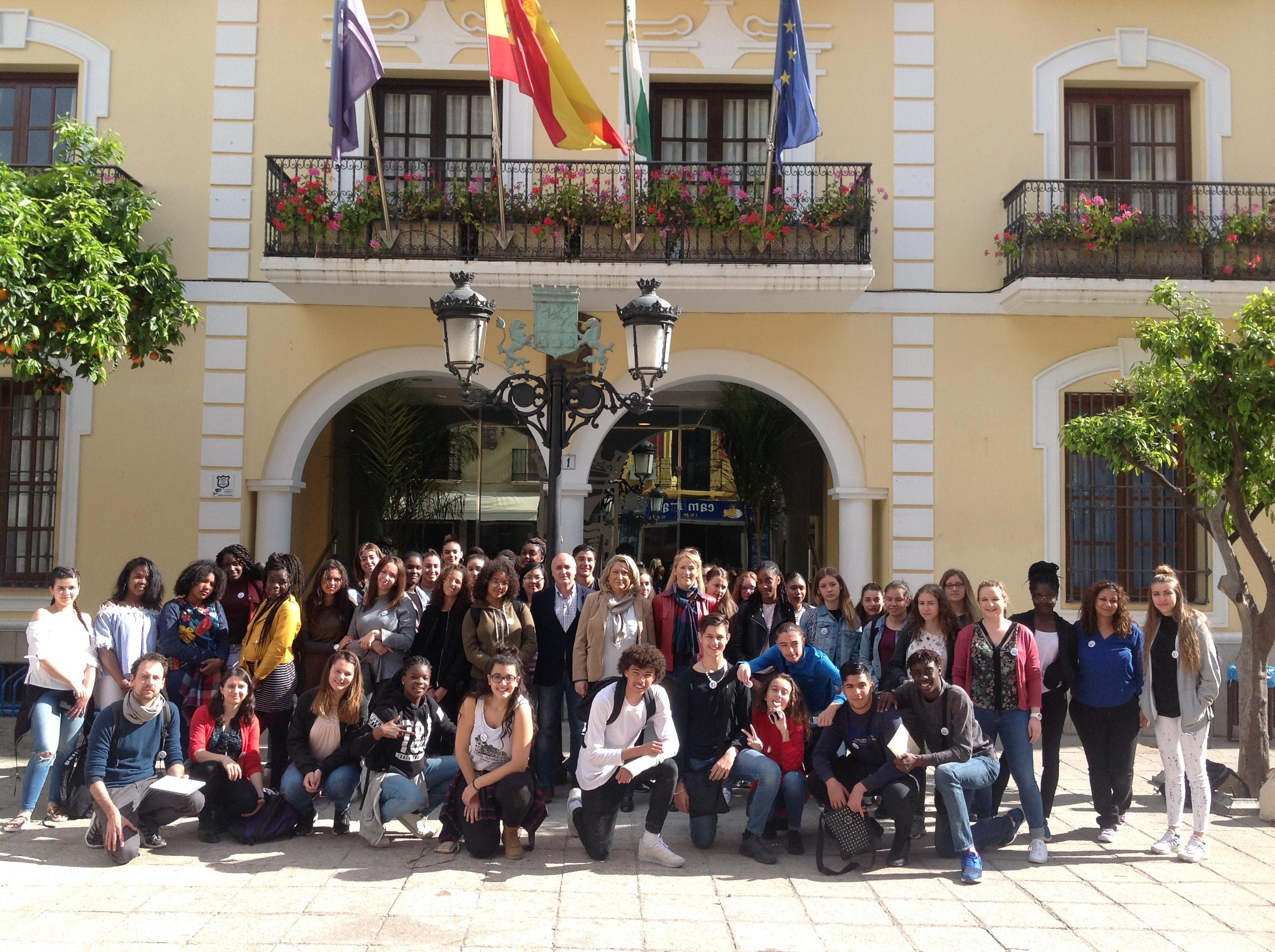 La alcaldesa de Almuñécar, Trinidad Herrera, ha recibido esta mañana la visita de casi medio centenar de alumnos y varios profesores del Instituto Henri Sellier, de la ciudad hermanada francesa de Livry- Gargan.