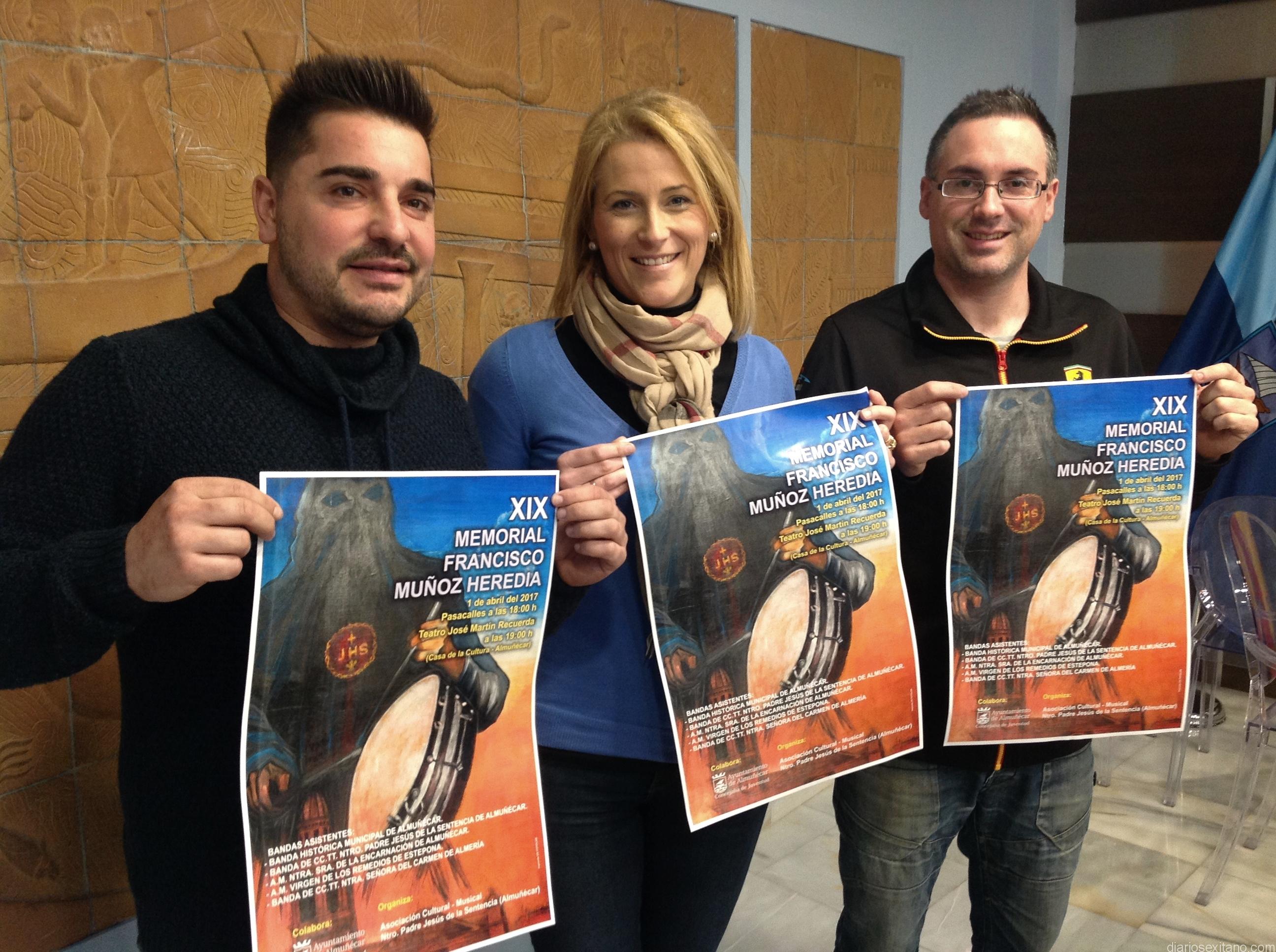 La concejal de Juventud y Relaciones Institucionales del Ayuntamiento sexitano, María del Mar Medina, y los representantes de la Asociación Cultural-Musical de al Nuestro Padre Jesús de la Sentencia de Almuñécar, Mario García y Luis Carlos Montes, han dado a conocer el cartel y programa del XIX Memorial “Francisco Muñoz Heredia”, que se celebrara el día 1 de abril, desde las 19 horas, en el auditorio “José Martín Recuerda” de la Casa de la Cultura sexitana.