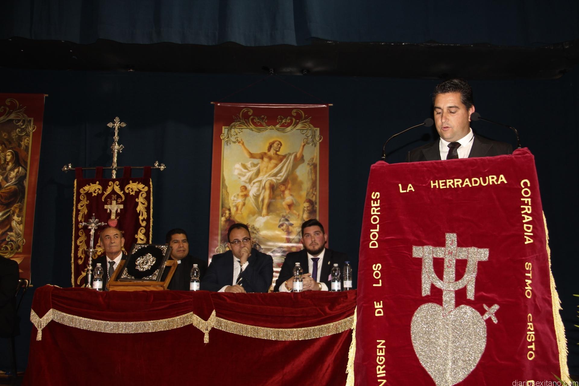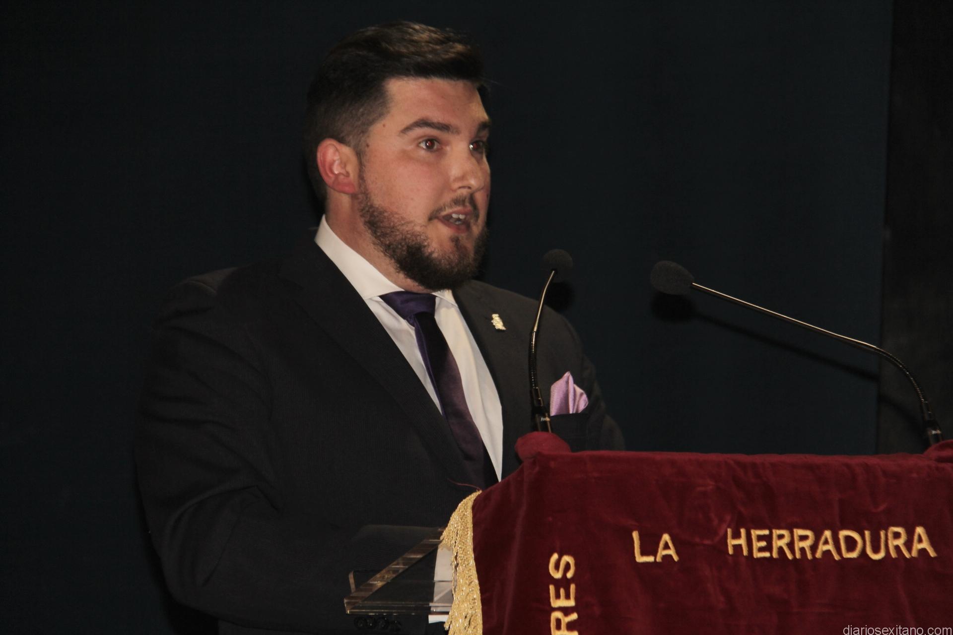 Enrique Trujillo Jiménez, que comenzó su intervención descubriendo junto al Hermano Mayor, Francisco Sánchez Camacho, el cartel oficial de la Semana Santa 2017, recordó su encuentro con La Herradura en 2004 y a través de amor de la que hoy es su esposa. También tuvo palabras de recuerdo para artista local, Pepe Gámez, por el legado que dejó para la Parroquia y, muy especialmente, para la Semana Santa como autor del Cristo del Sepulcro.