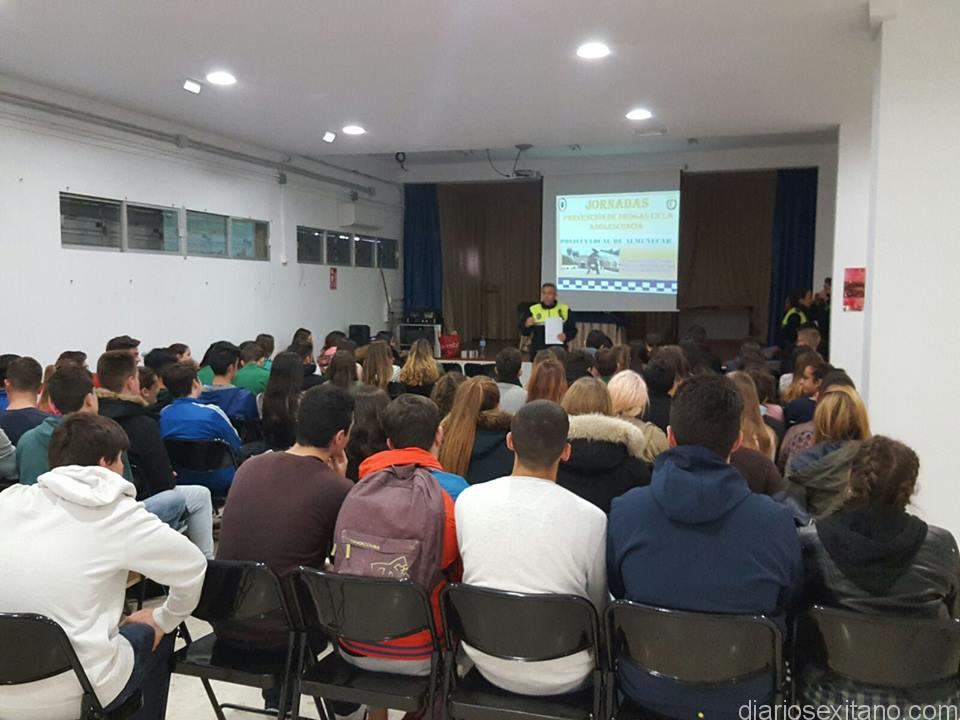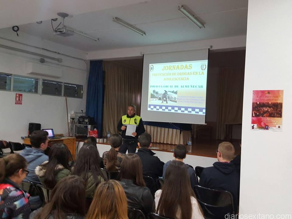 Cerca de 300 alumnos de Bachiller y ESO de los IES sexitanos Antigua Sexi y La Herradura asistieron a las charlas que ha impartido la Policía Local de Almuñécar contra el consumo de drogas.