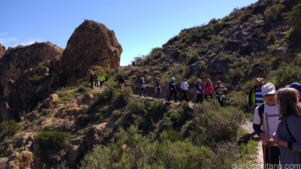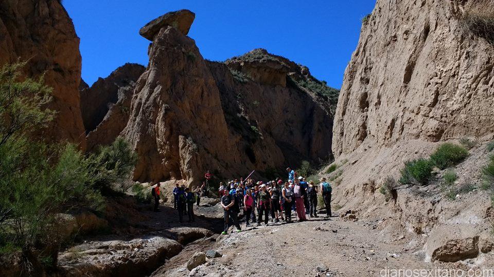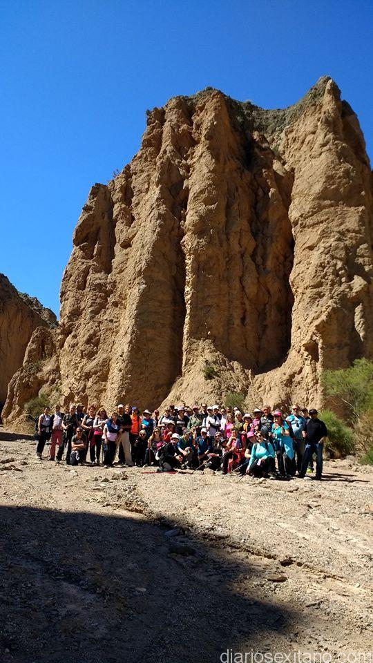 Bajo la coordinación de Enrique Garín y Francisco Novo, tras una corta visita al yacimiento arqueológico más importante de Europa de la Edad del Cobro y denominado “Los Millares”, los senderistas sexitanos comenzaron la ruta en la misma plaza de la iglesia de la localidad almeriense para adentrarse a continuación entre campos de cultivo, hasta llegar a la Rambla de Los Yesos. “ES un lugar de espectaculares cromatismos y formaciones. El trazado nos llevó al grupo hasta el área recreativa del “Salto de caballo”. Fue en este lugar donde aprovechamos para reponer fuerzas y refrescarnos, dada la jornada soleada que disfrutamos”, relató Garín