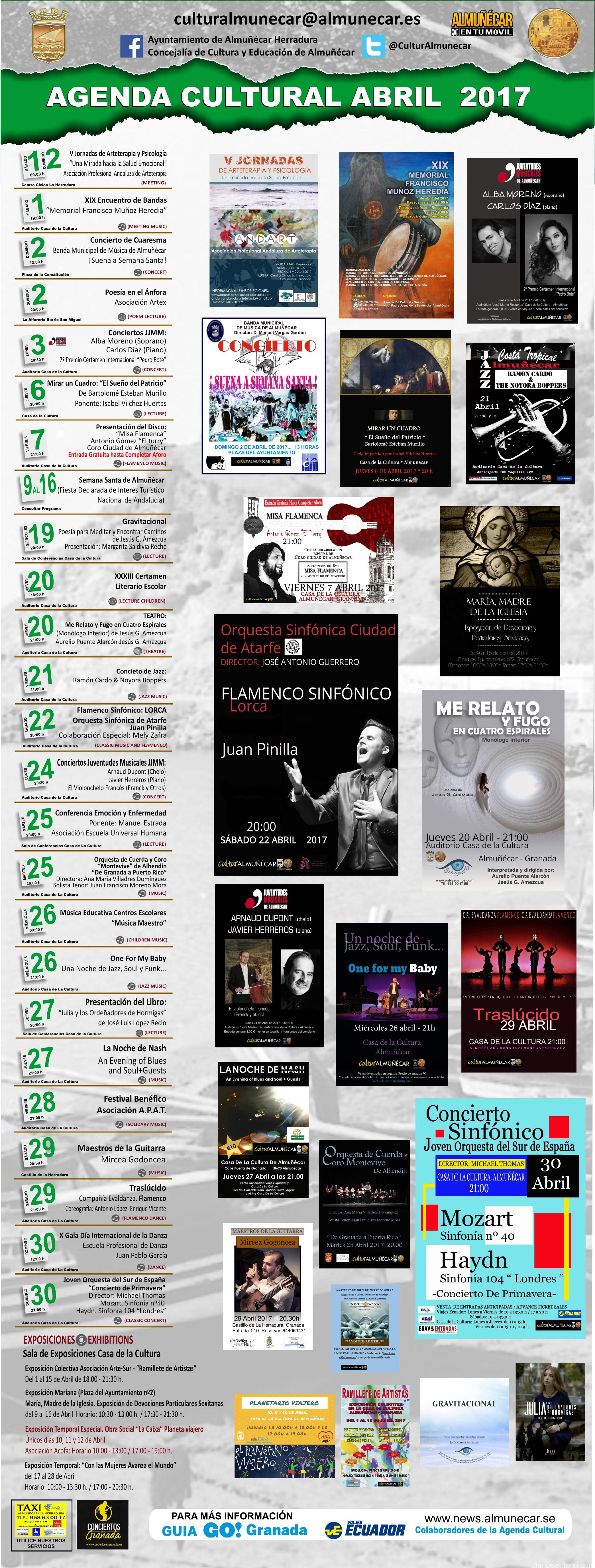 Con un intenso fin de semana cargado de actividades culturales en Almuñécar y La Herradura comienza el programa cultural del mes de abril en el municipio sexitano que ha hecho público la Concejalía de Cultura del Consistorio almuñequero que dirige, Olga Ruano.