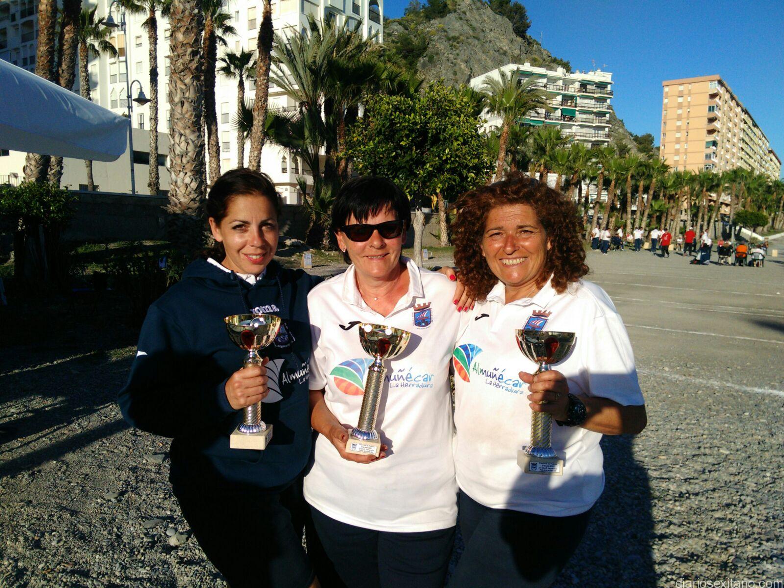 La tripleta campeona de Granada en féminas fue la almuñequera del citado Club de Petanca Internacional formada por Chantal Tschaen, Edelmira Montes y Violeta Ruiz.
