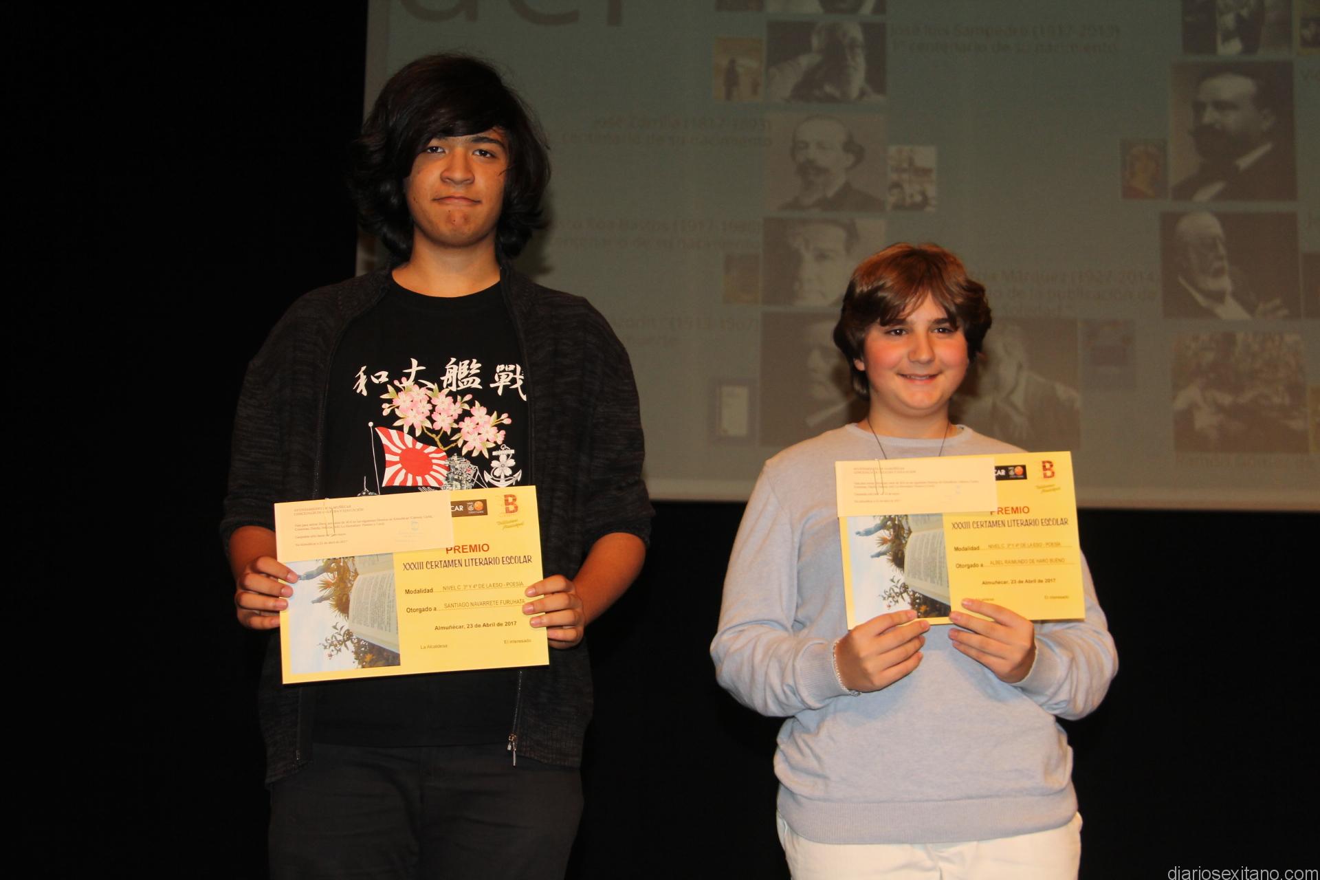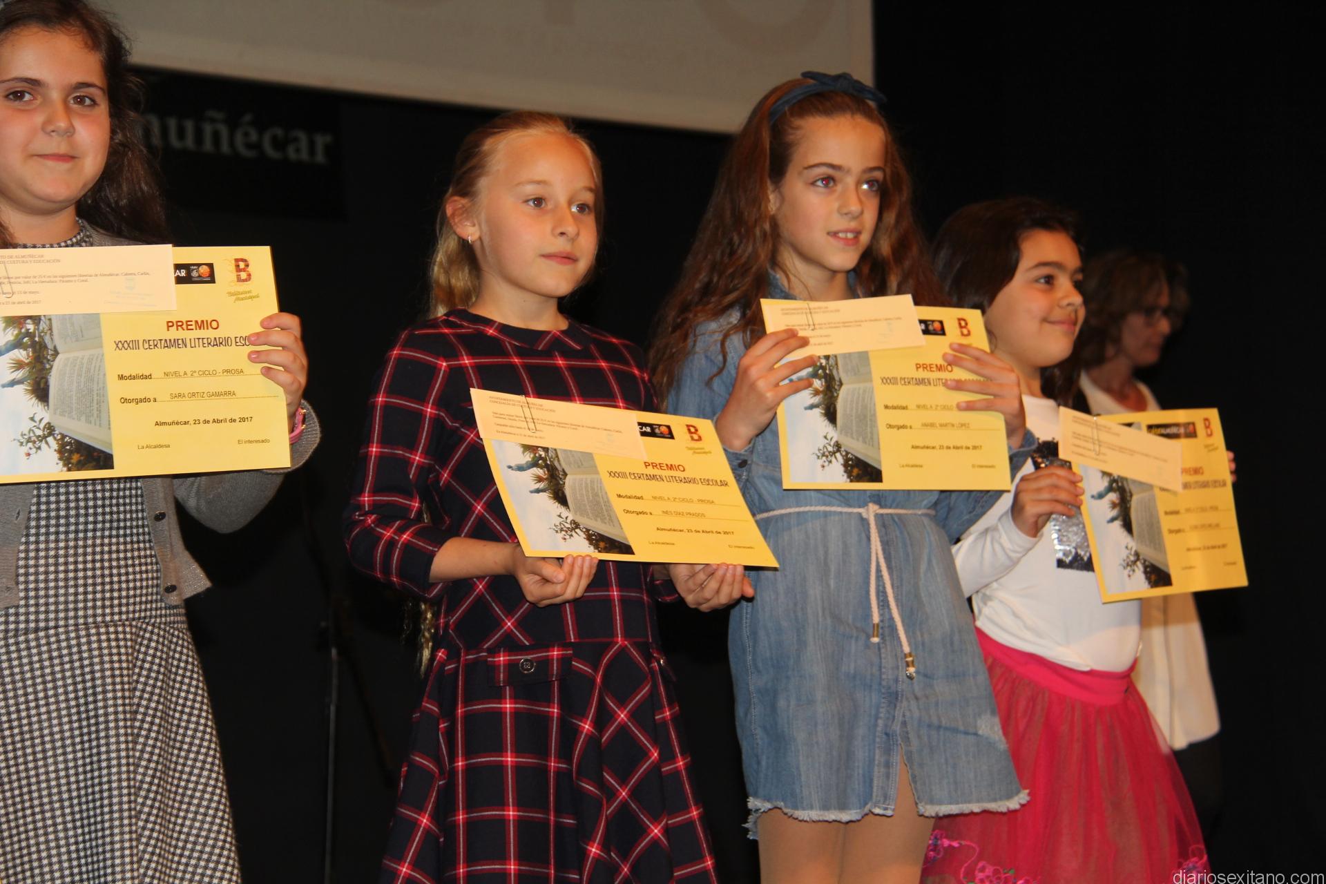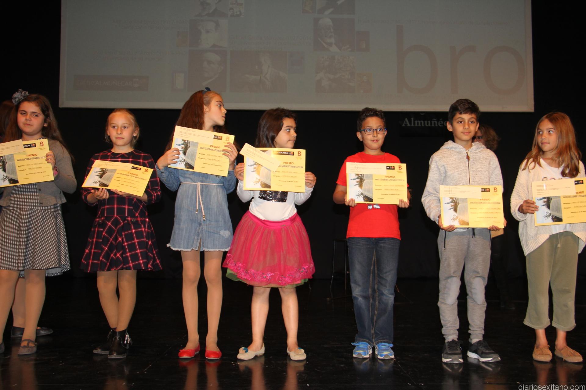 Los afortunados galardonados obtuvieron, además del diploma, vales de material literario que pueden retirar en las distintas librerías de Almuñécar y La Herradura. La cuantía de los premios que oscilaba entre los 25 euros para los alumnos de Primaria; los 30 euros, para los alumnos premiados en la ESO y 35 euros que obtuvieron los galardonados en Educación Permanente y Bachiller. También se entregó una pequeña aportación de 150 euros a los colegios más activos y que este año han correspondido a dos, explicó el director de la Biblioteca y secretario del Certamen, Javier Sánchez Contreras.