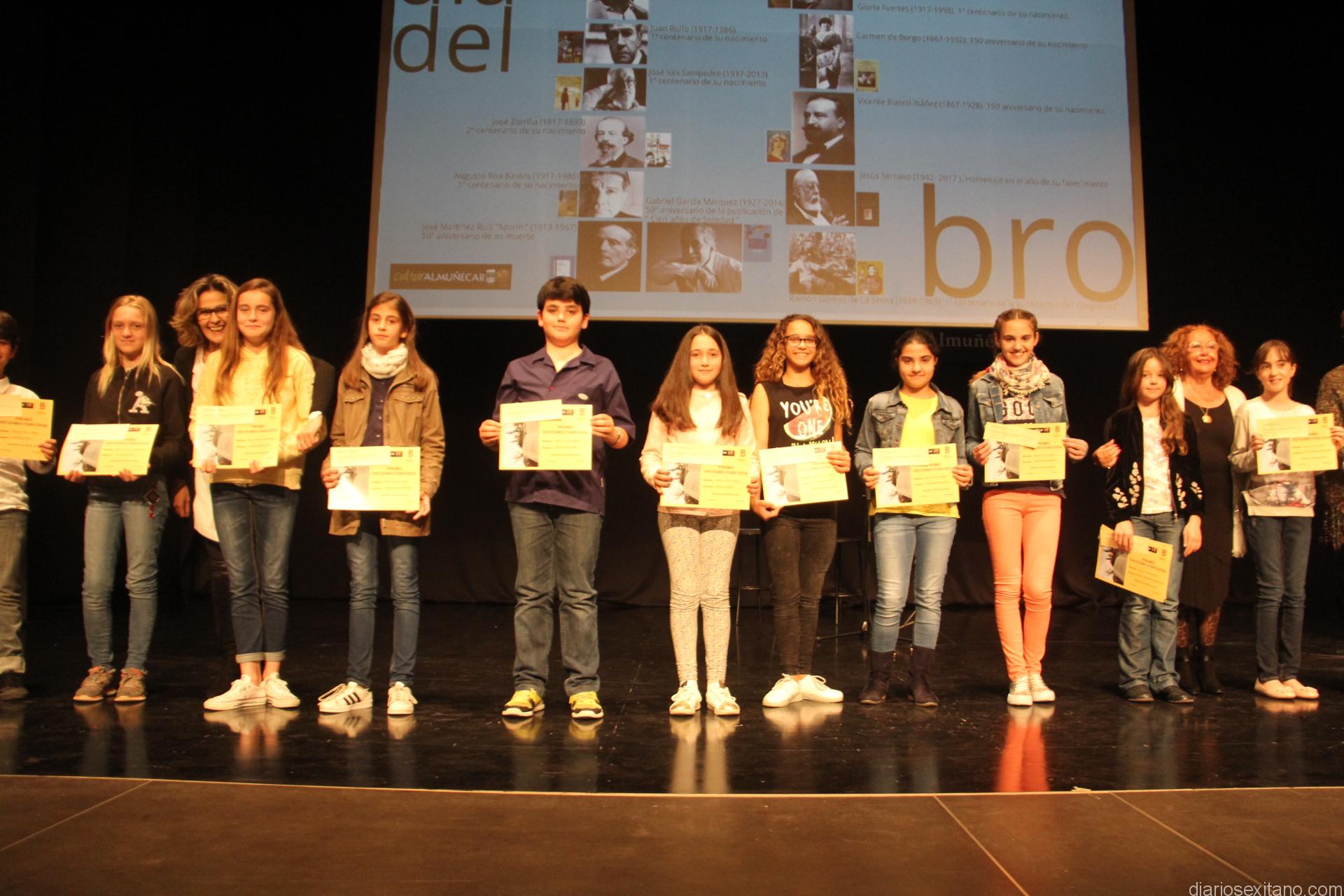 Fue precisamente el director de la Biblioteca Municipal de Almuñécar, Javier Sánchez Contreras, el encargado de ir convocando a los premiados al escenario por modalidades y grupos de formación hasta completar el casi centenar de premiados.