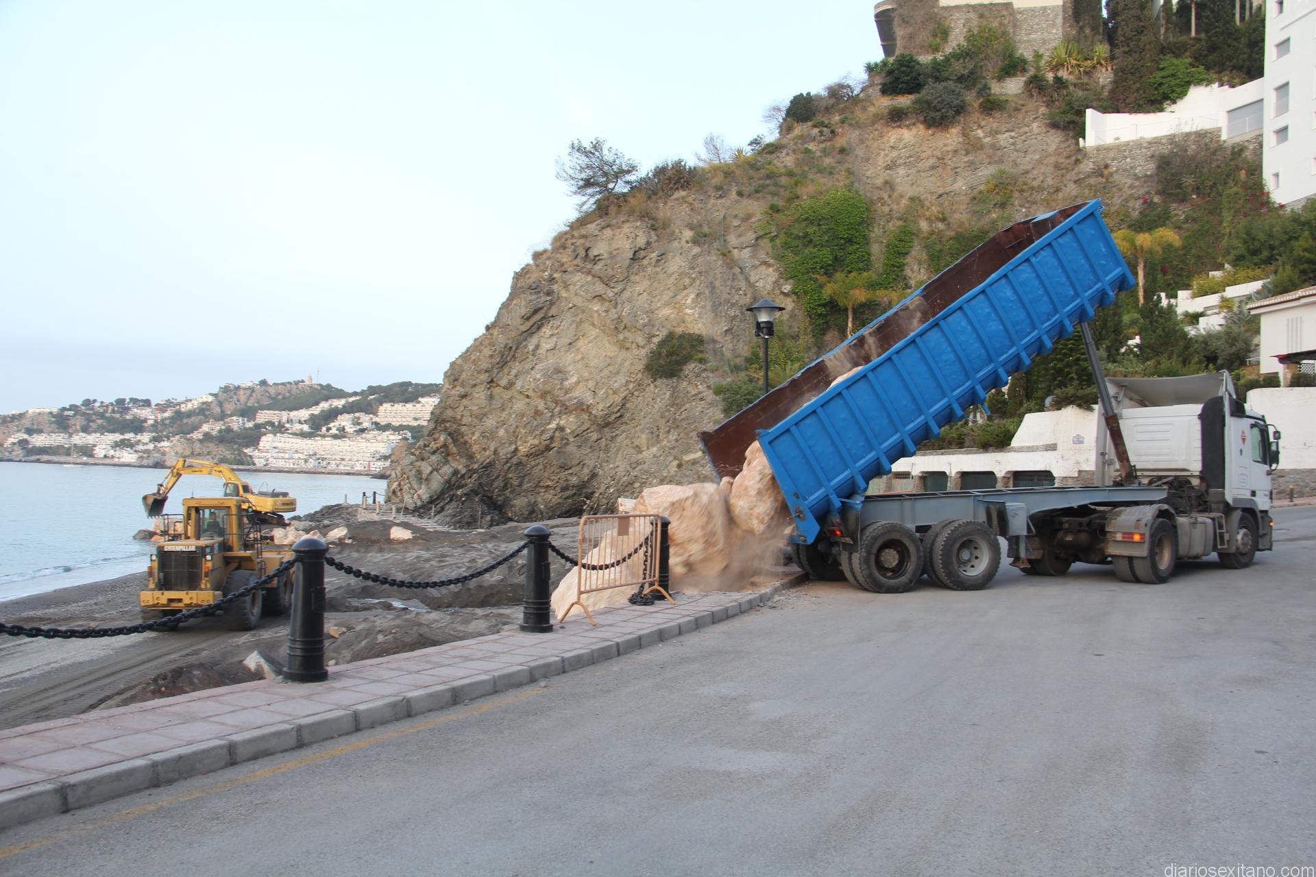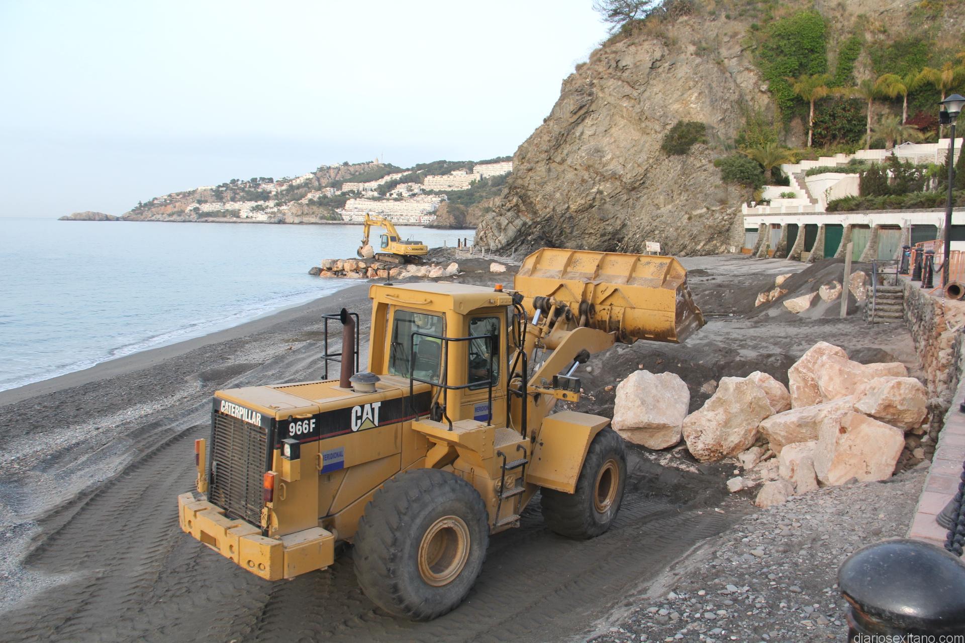 Estos trabajos arrancan tras haber concluido el espigón sumergido en la desembocadura de Río Jate, en La playa de La Herradura, que sirva de contención de la arena en Peña Parda, donde el último temporal también dejó una importante huella en la zona.