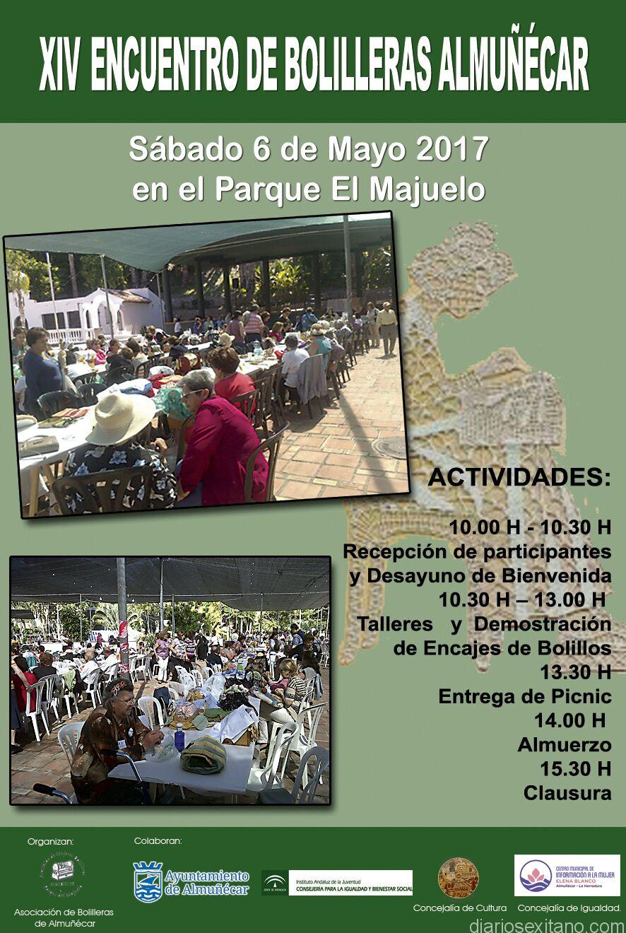 La Asociación de Bolilleras de Almuñécar y el Ayuntamiento sexitano ultiman los preparativos para celebrar el XIV Encuentro de Bolillos Almuñécar 2017 que tendrá lugar, este sábado día 6, en el parque El Majuelo, contando con la participación de asociaciones de las provincias de Murcia, Almería, Jaén, Málaga y Granada, así como numerosas empresas que mostraran en sus stand los productos relacionados con el bolillo, según ha informado la presidenta de la Asociación de Bolilleras “Parque El Majuelo” de Almuñécar, Antonia Rivas.