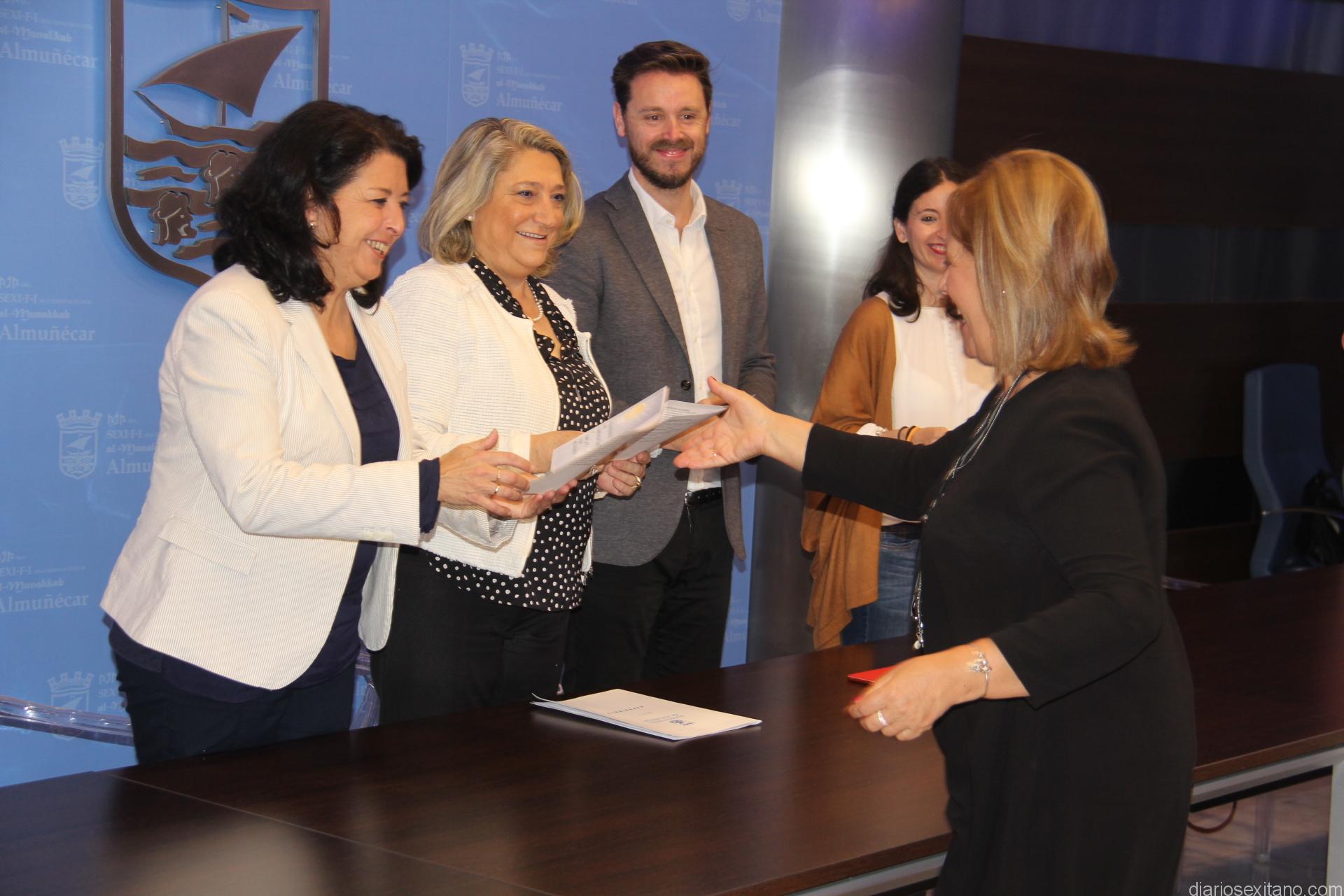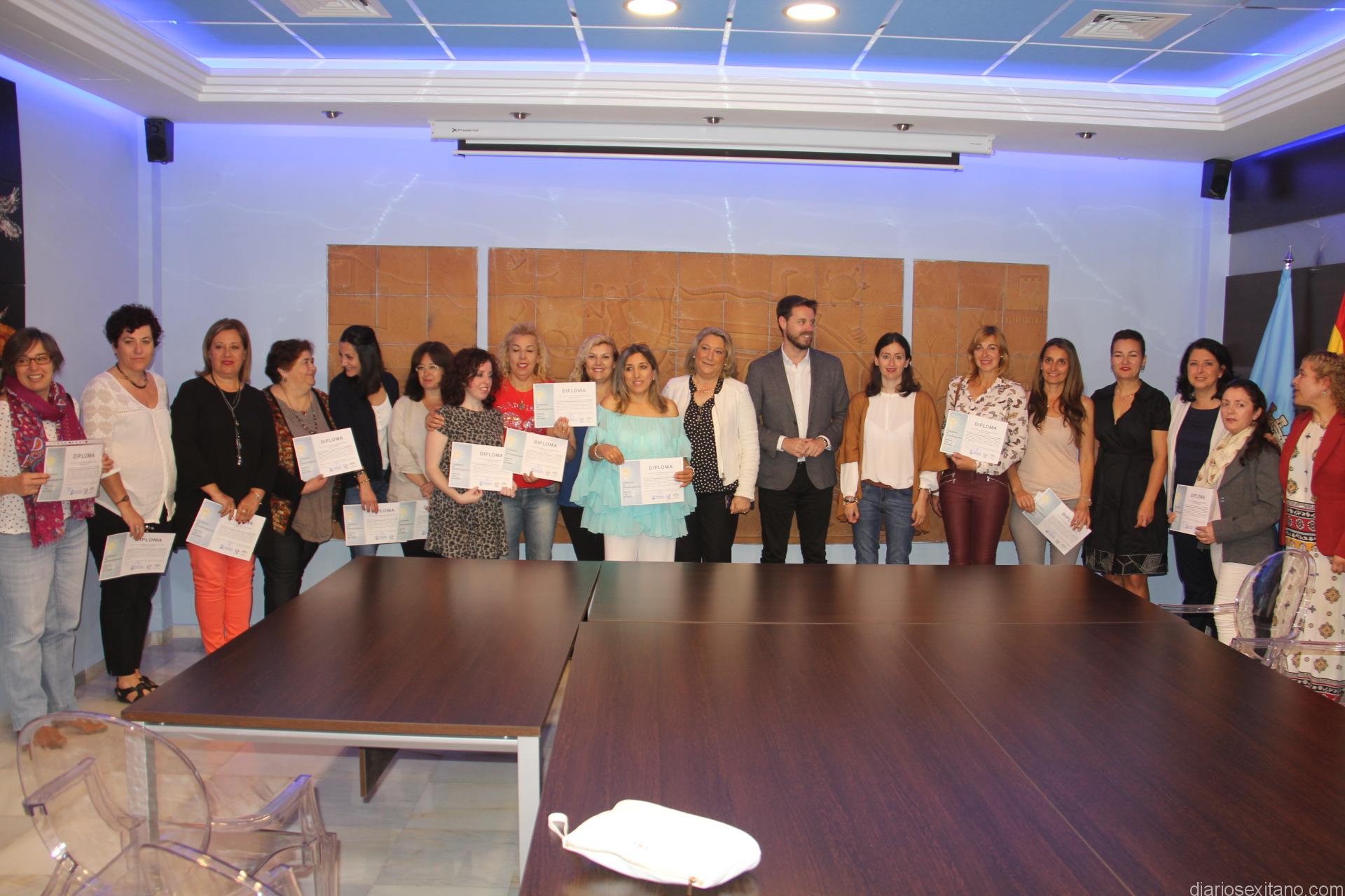 En la entrega de diplomas, celebrada en el salón de actos del Consistorio sexitano, han participado también la delega de Empleo de la Mancomunidad, María del Carmen Fernández y la edil almuñequera de Bienestar Social e Igualdad, María del Carmen Reinoso.